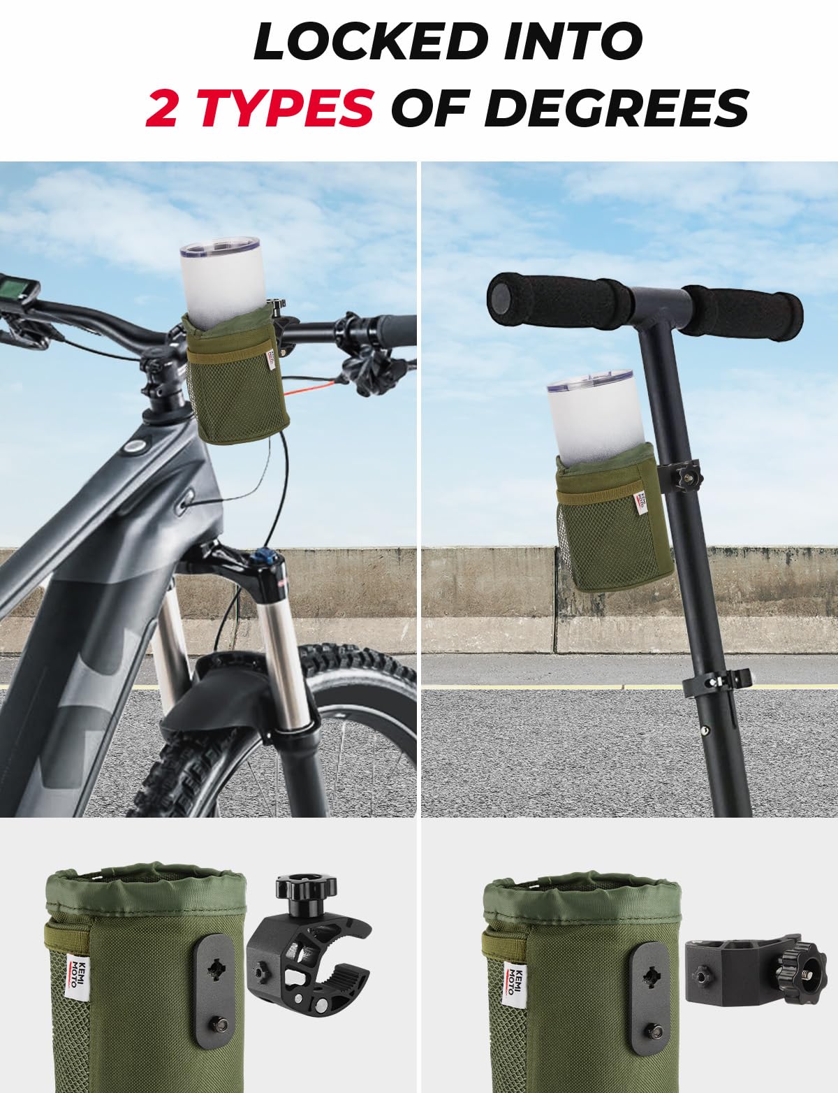 Upgraded Alligator Clamp-Patented Design: Compared with the old style, kemimoto motorcycle cup holder has upgraded the 90°adjustable alligator clamp increased from 1 screw to 2 screws, and add a cross-mounting hole design, which is more sturdy, better load-bearing, and will not loosen or spin. Get rid of the trouble of falling off and loosening when riding at high speed and spinning when holding large-capacity water bottles