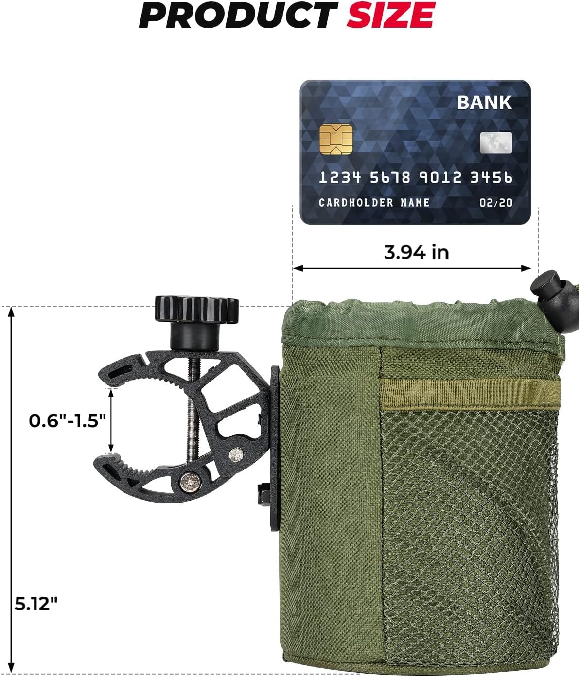 Easy to Install on 0.6"-1.5" Pole: The alligator clamp of this kayak cup holder fits 0.6"-1.5" diameter handlebars/pole, please confirm the diameter of your handlebar/pole before purchasing. And it is easy to install and remove with a hand screw design.