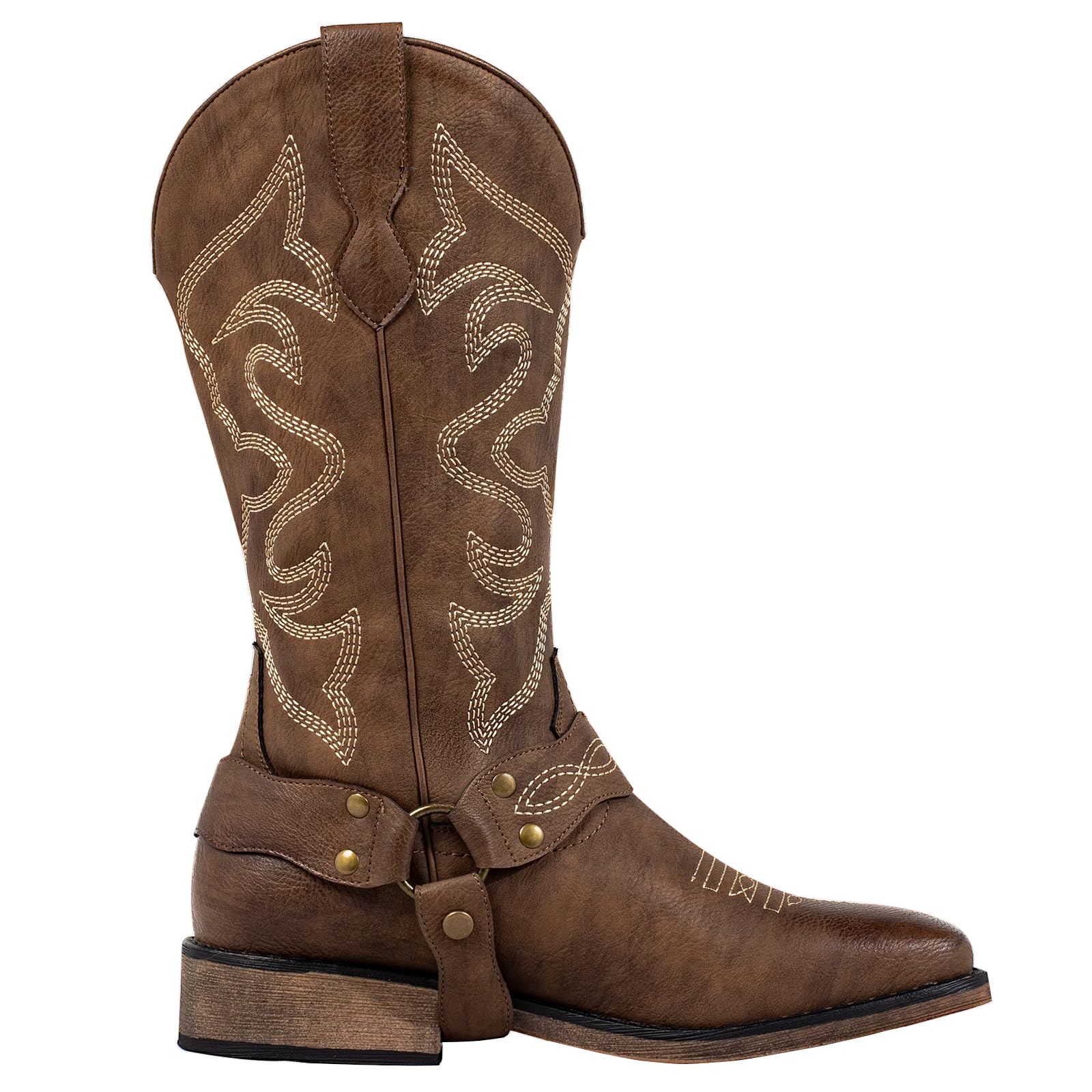 All Day Comfort: Lightweight womens cowboy boots boast soft pu leather upper, thick latex padded insole ,breathable mesh lining, and wide calf design, ideal for extended periods of standing or walking.