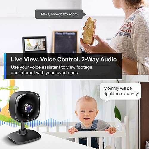 【Works w/ Alexa & Google Assistant】Fully compatible with Amazon Alexa and Google Assistant, use your simple voice command to view Tapo indoor security camera live stream on Echo Show or Google Chrome Cast with a screen. Easily get your home security footage up on a larger TV display.