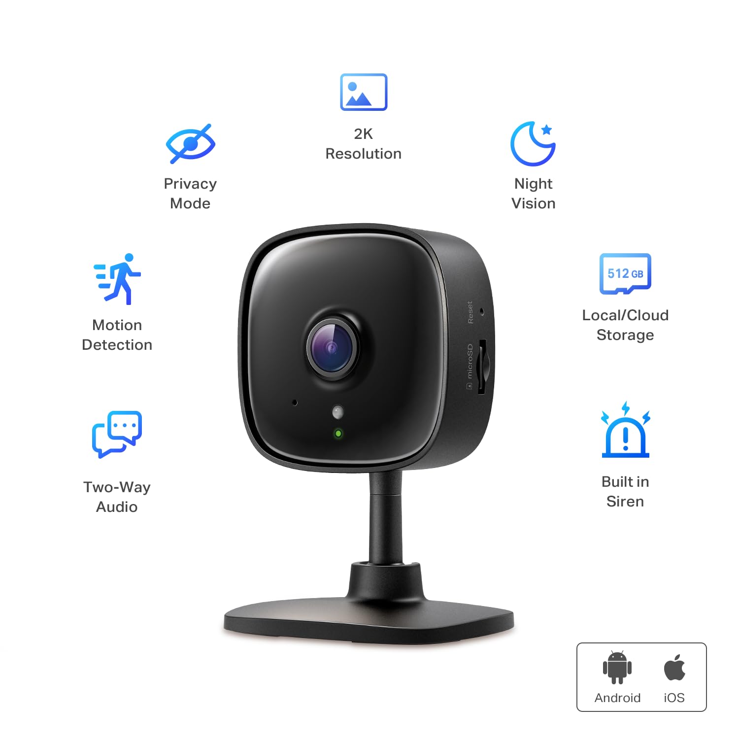 With crystal clear 2K HD video, the Tapo C111 Home Security Wi-Fi gives you the ability to always keep an eye on your family, pets, and protect your home. With person and motion detection, get instant notifications that matter when there is activity going on. Check what's inside your home, even at night with night vision thanks to the integrated IR sensor. With device sharing, you and a family member can both monitor the feed making keeping an eye on the little ones just a little bit easier. Record footage continuously onto a 512 GB micro-SD card (not included) or subscribe to Tapo Care for 30-day video history and many other benefits like Rich Notification, Video Summary and more. [Before purchasing a microSD card, please check the TP-Link website FAQ to ensure compatibility with your device.] With crisp 2-way audio, you'll never truly be away again with the ability to hold clear conversations with who's there. Additionally, keep your family safe from unwanted intruders by playing the built-in siren and light alarm.
