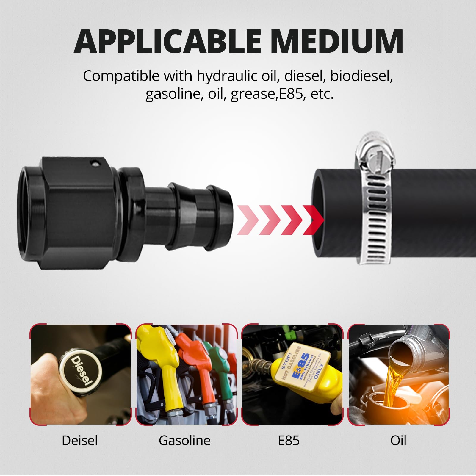 Medium: The high-pressure fuel hose is compatible with hydraulic oil, diesel, biodiesel, gasoline, oil, grease, E85, and more.