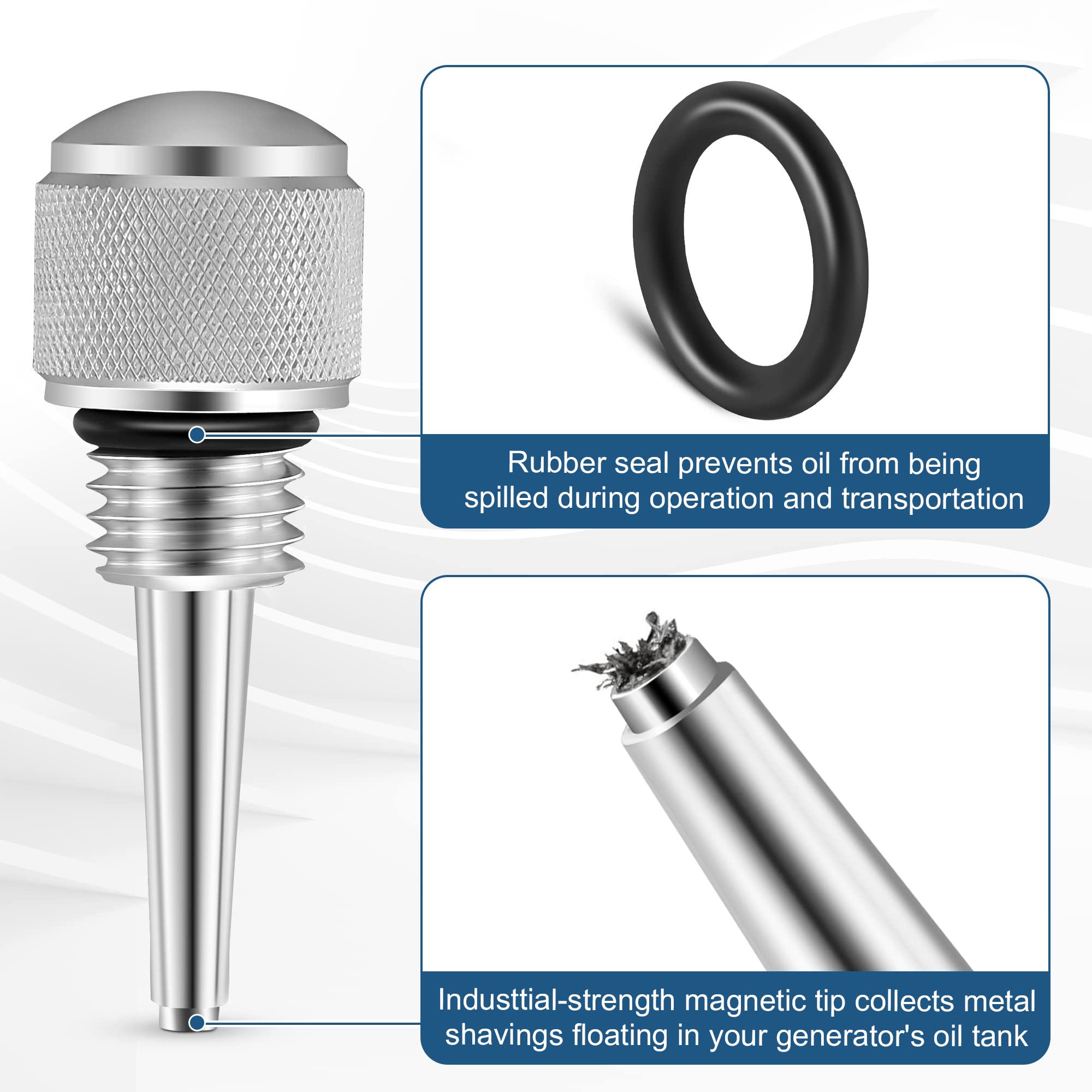 How to Work: the magnetic dipstick extends the serve time of your inverter generator by catching the loose metal filaments that naturally build up inside the oil tank; Simply replace your current dipstick with this heavy duty metal alternative to begin collecting any unwanted metal shards floating around in your oil supply; The magnet can hold more than 1 pound of ferrous material
