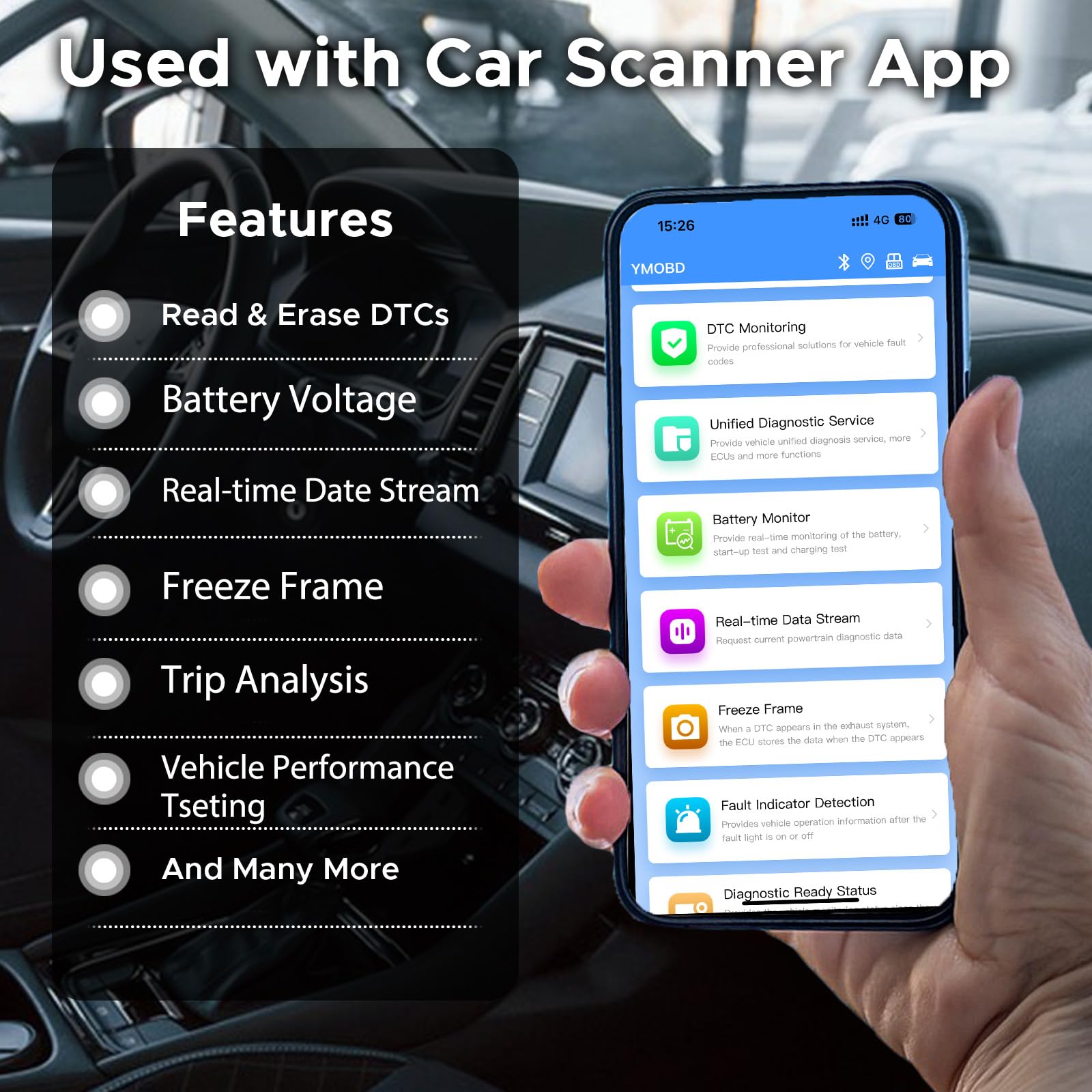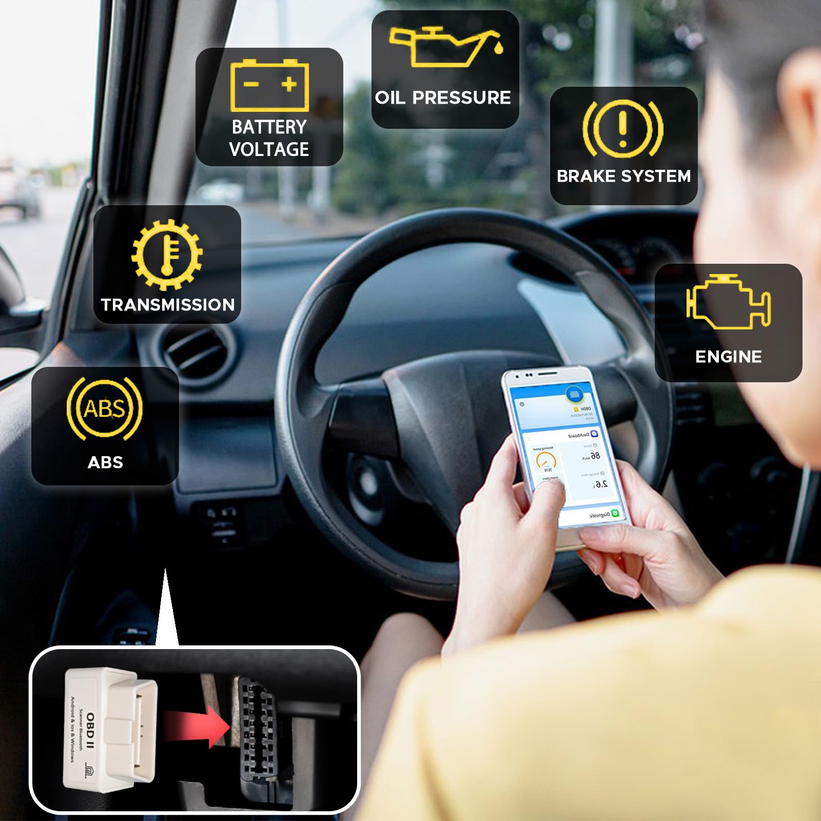 【Get The View Live Data】-Much more than a car code reader, Opdooke OBD2 Car Scan Tool is a diagnostic tool. help you anytime keep track of your car's fuel consumption, battery voltage, braking distance, coolant temperature and other vehicle health information