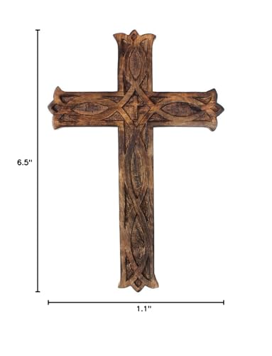 The carved cross has a wonderful antique burnt finish and has alluring patterns on the surface done by hand.
