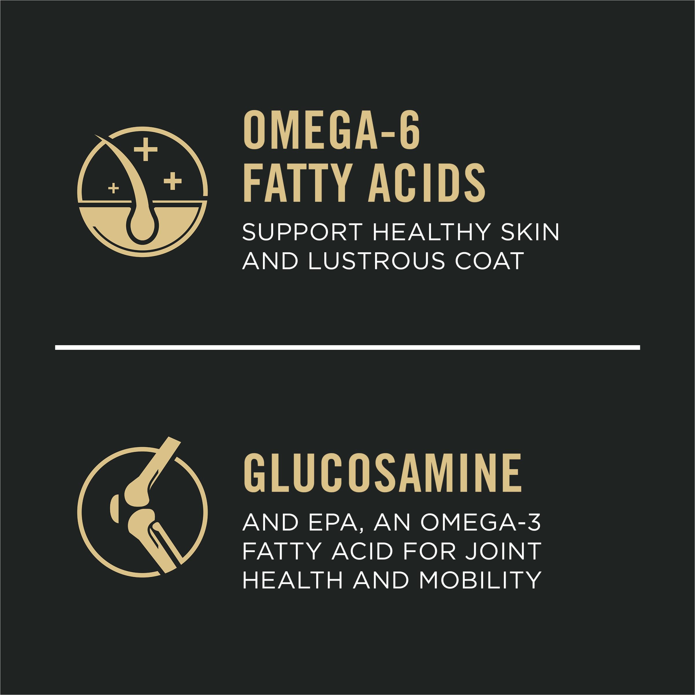 Dog food with glucosamine and EPA, an Omega-3 fatty acid to promote joint health and mobility