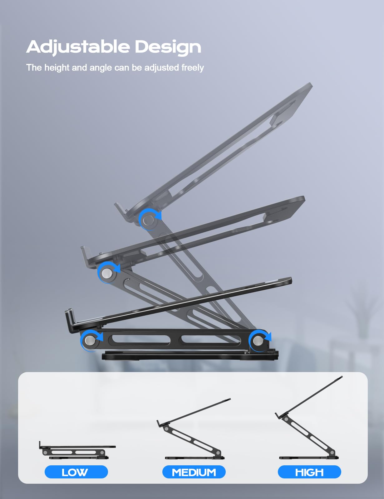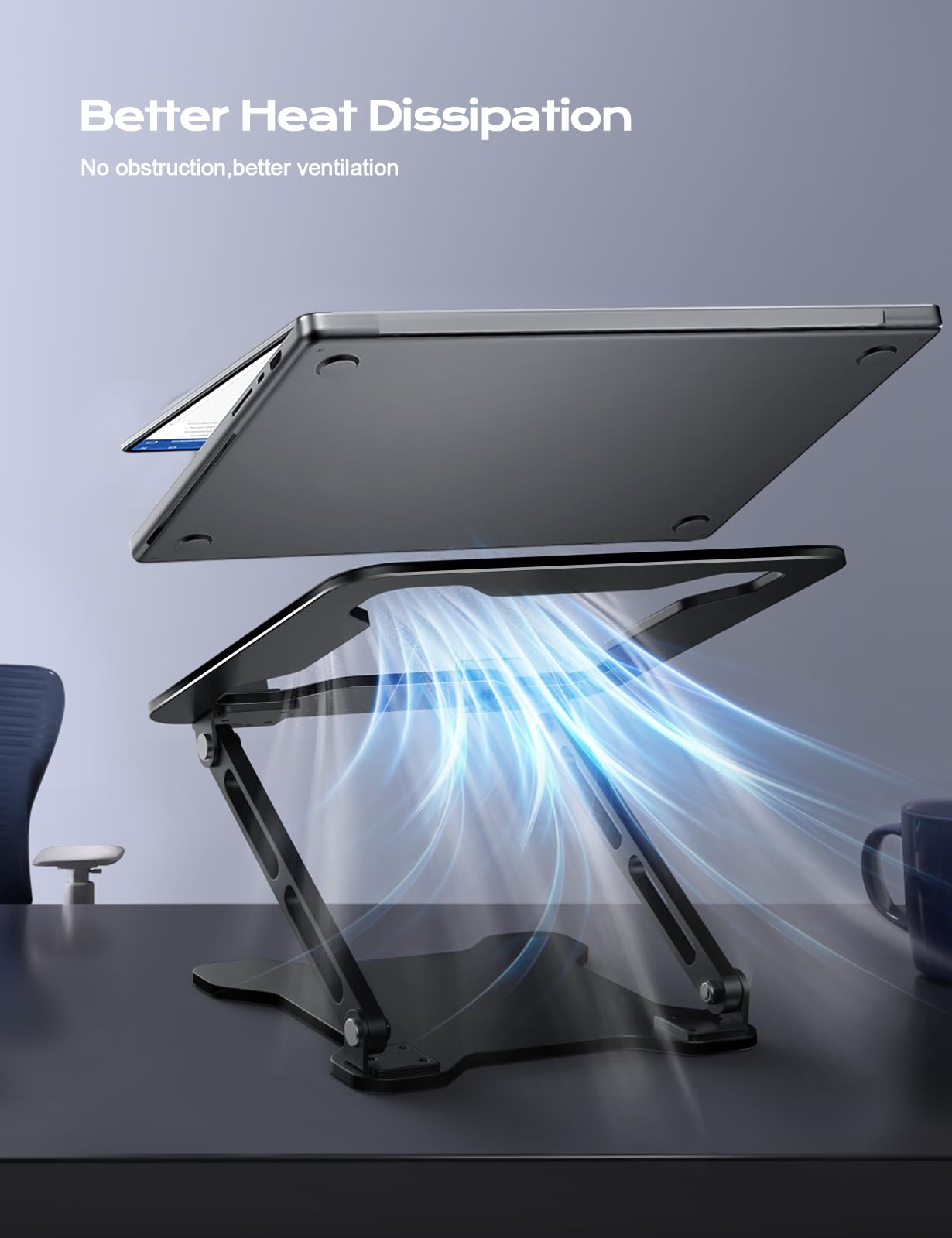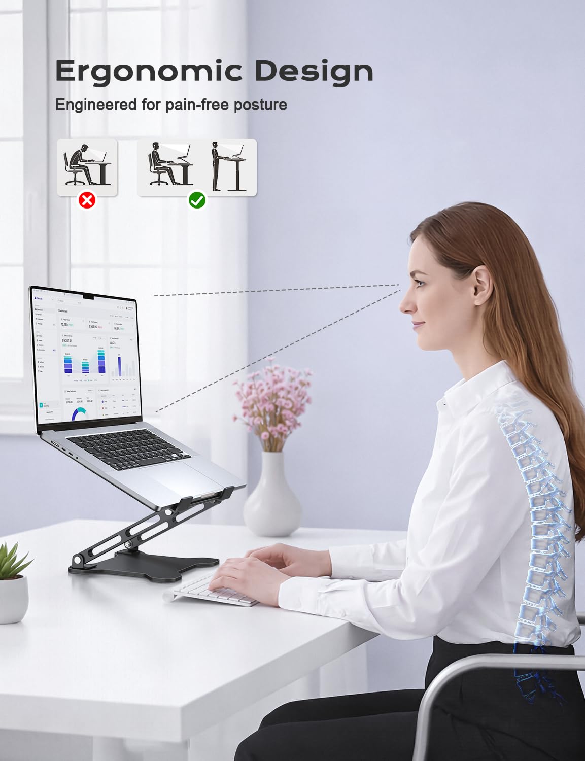 【Foldable & Ergonomic Design】: This laptop stand can be adjusted to a comfortable height and angle according to your actual needs, allowing you to maintain a comfortable posture, reduce neck fatigue/back pain and eye fatigue, and is very suitable for working at home, in the office and outdoors