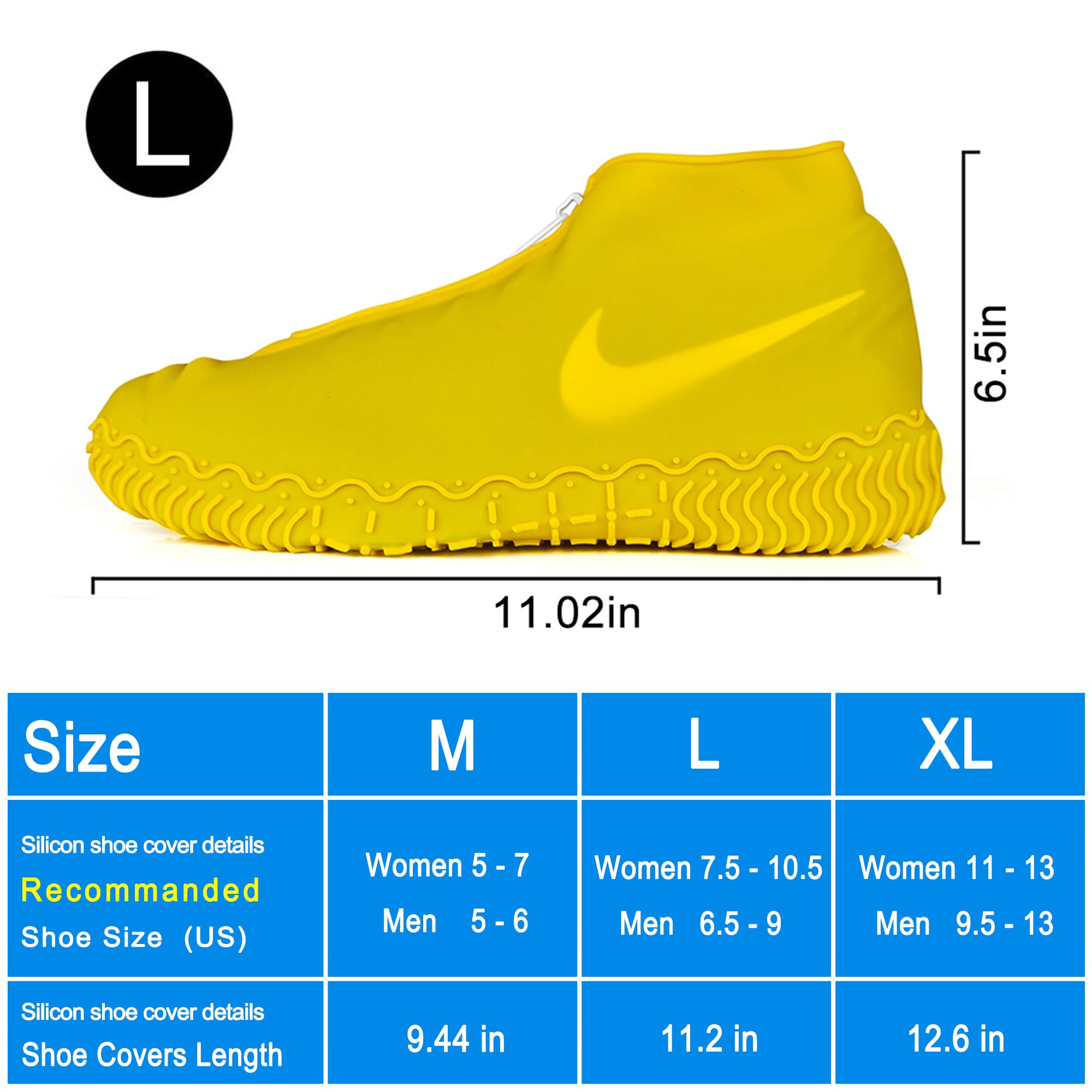 ALL-ROUND WATERPROOF, REUSABLE : Stretchable silicone And very resistant to tearing, Waterproof zipper strip design helps you to put them on and off easily,it can avoid rain or water into the shoe cover from zipper,extending the lifetime of your footwear. Waterproof shoe cover no need to take hundreds of shoe & boot covers, simple to wear silicone waterproof cover just spend one minute.
