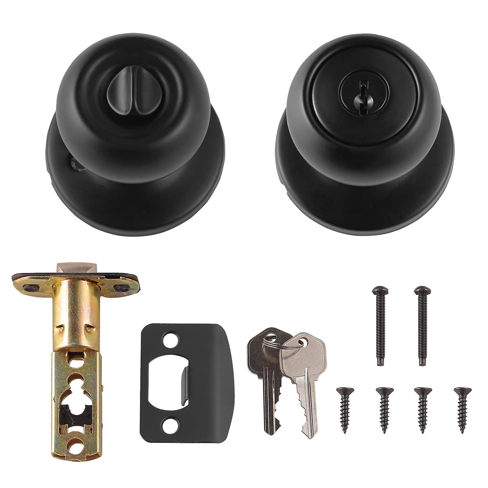 Includes two (2) brass keys, KW1 keyway, rounded steel faceplate and strike, and zinc alloy latch bolt