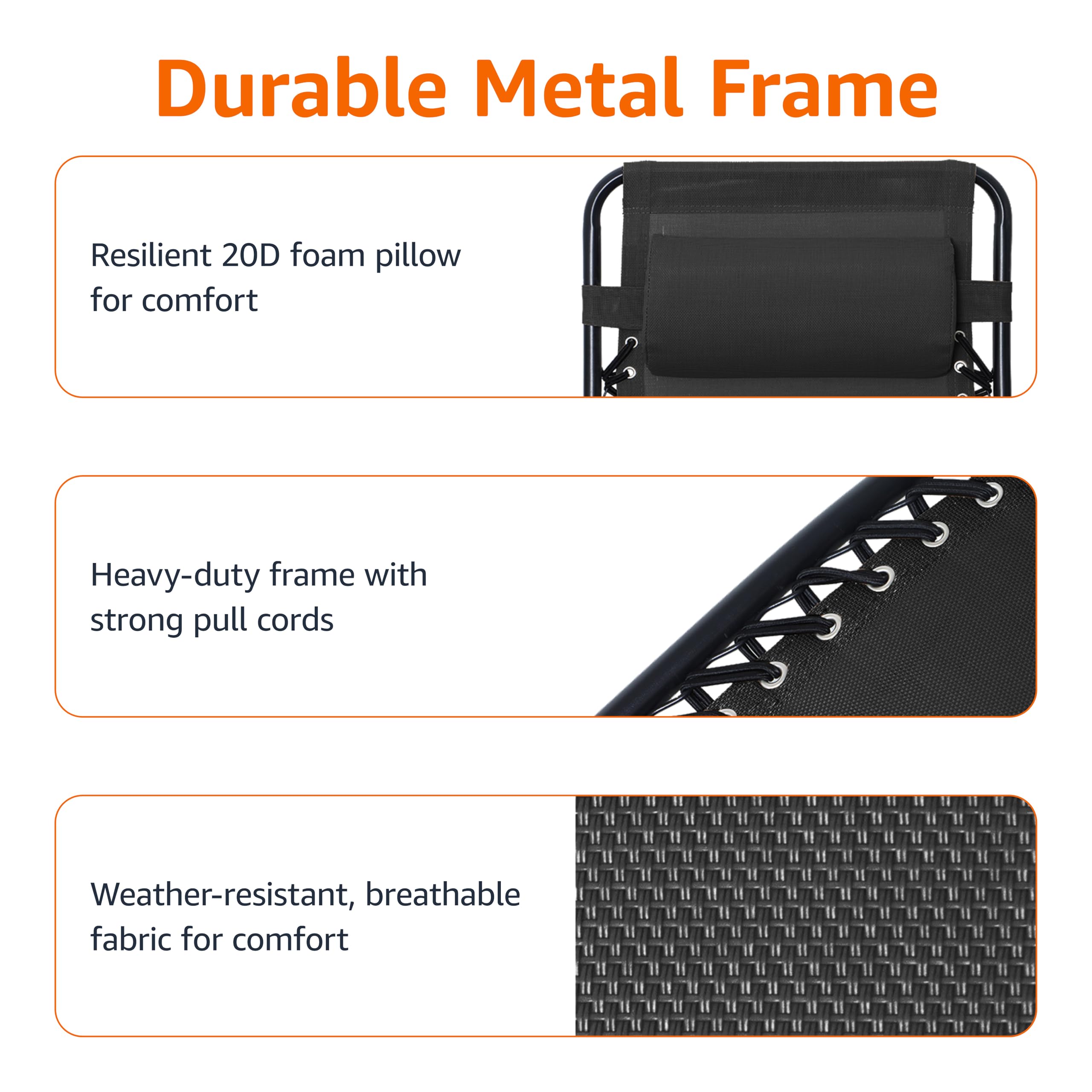 Adjustable zero-gravity outdoor chair in Black offers a weightless feel for optimal relaxation