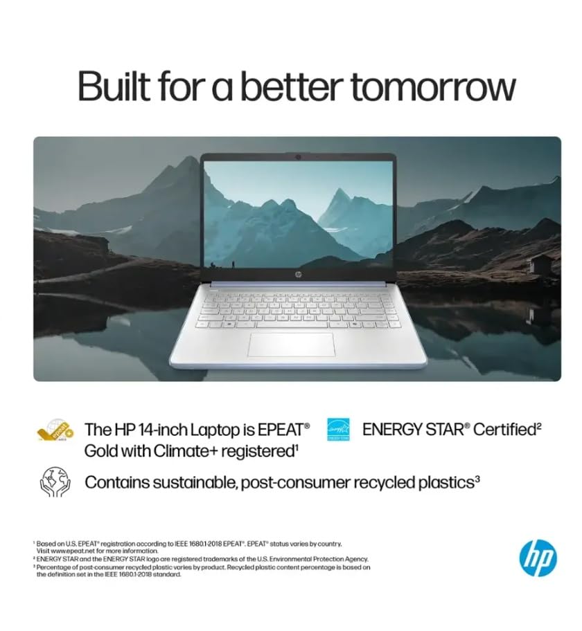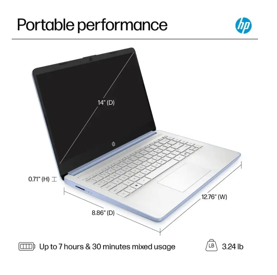 14" HD Display: Features a 14-inch HD (1366x768) anti-glare screen with BrightView and 250 nits brightness. The micro-edge design offers a wide viewing area. Includes an HP True Vision 720p HD webcam with dual microphones for clear video calls, even in low light.