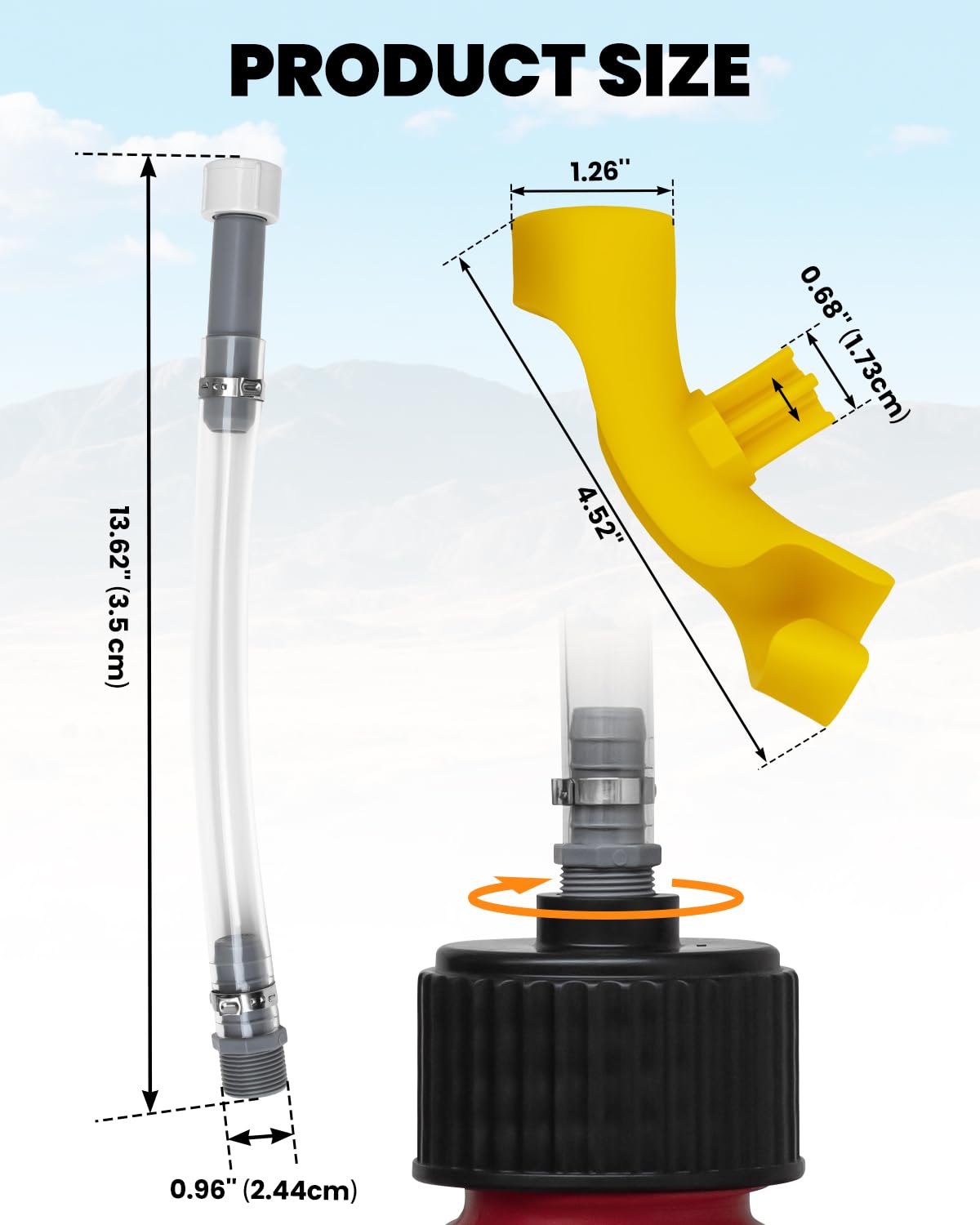Compatible: Our hose fits perfectly with Racing Fuel Jugs of various sizes, including 5.5 gallon and 3 gallon jugs, ensuring a secure and leak-free connection