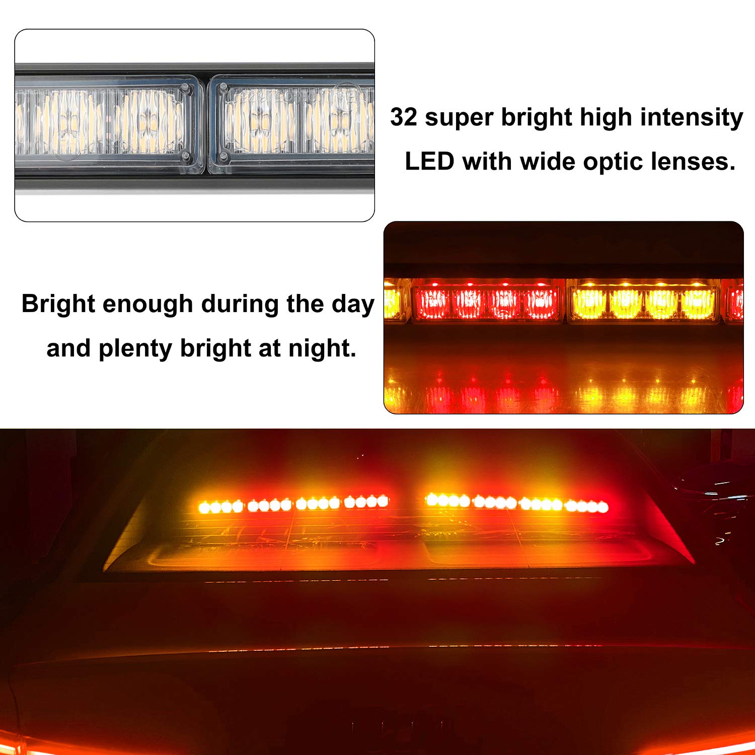 SUPER VISIBILITY -- 32 super bright high intensity LED with wide optic lenses,offers a super bright light output.Brighter and more effective than standard Led Strobe Lights,Bright even in the daytime.