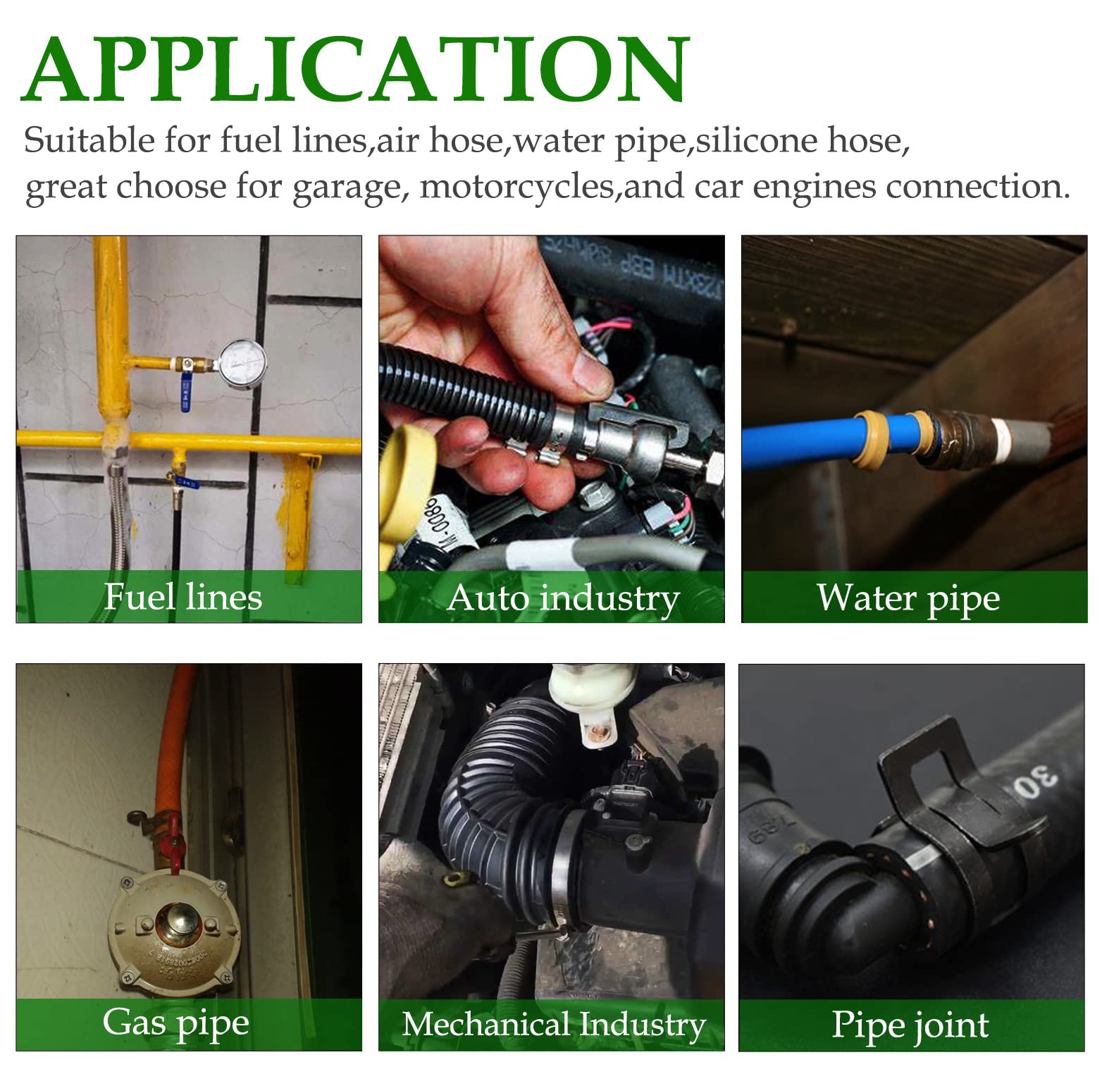 [ Wide Application ] Used to fix and seal interfaces, such as fuel lines for power equipment, air hoses, water pipes, silicone vacuum hoses, machine tools, fire fighting, various mechanical equipment, etc. Suitable for automobiles, agriculture, aviation, material handling, ships and construction.