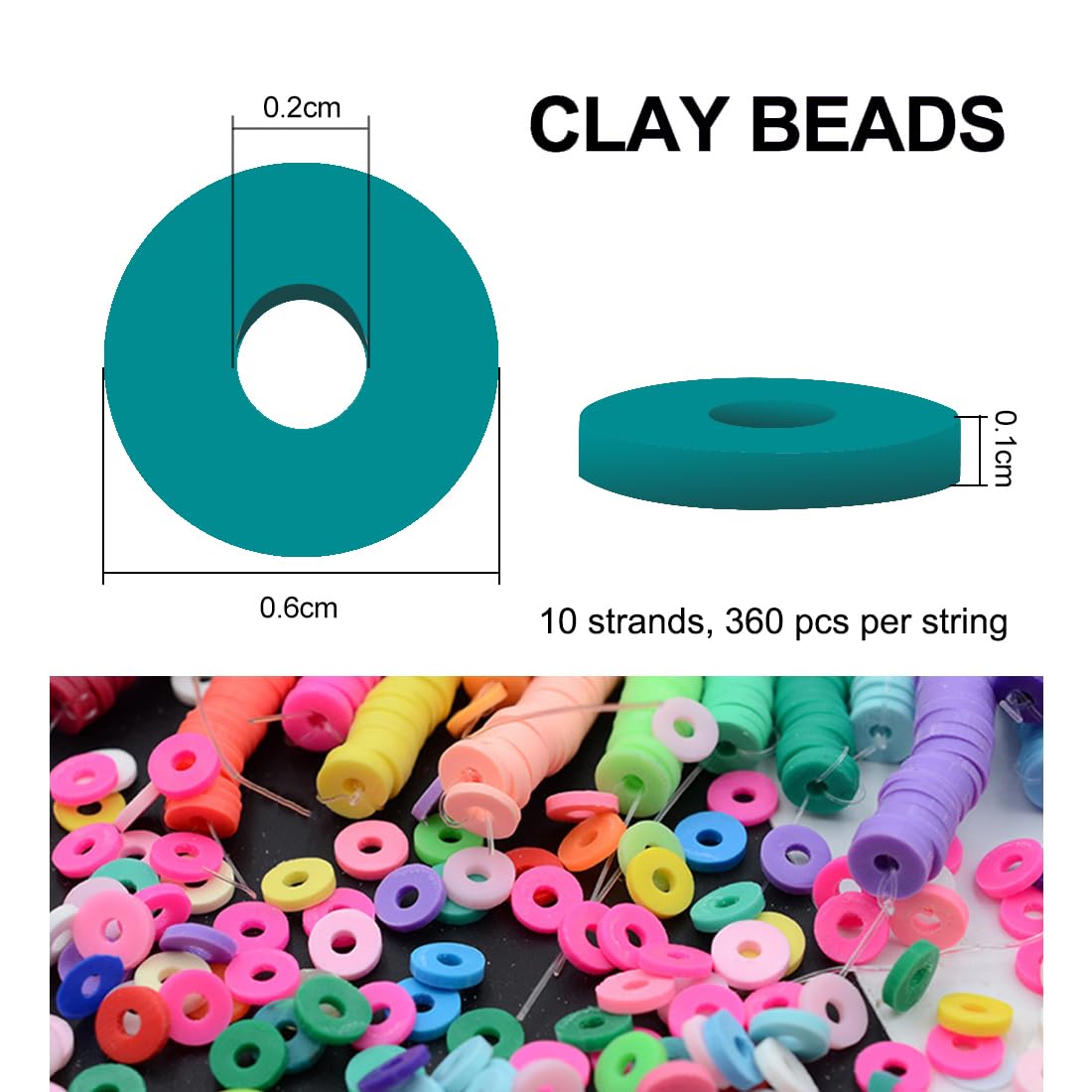 Color: Teal Material: polymer clay Size: 6 mm(0.23 inche) in diameter, 2 mm(0.07 inch) in hole diameter Product Weight: 165G Package Contents: 3600 x coloful clay beads Notes: Handmade color mixing, different displays could cause slight colour-difference problems occasionally.