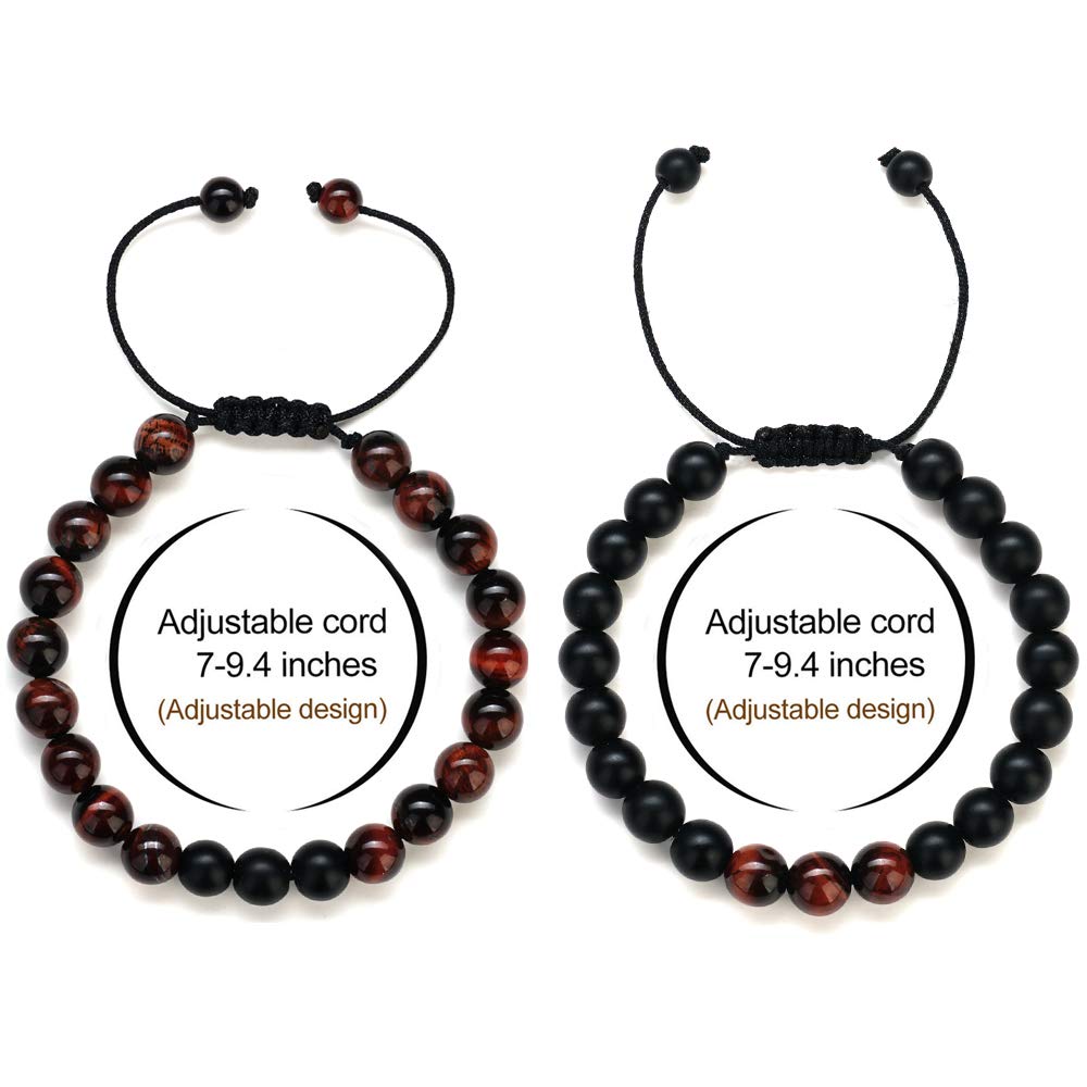 SIZE: This tiger eye stone and black matte agate stone bracelet with adjustable cord, inner length is from 6 inches to 12 inches. Suitable size tiger eye bracelet for men and women wearing.