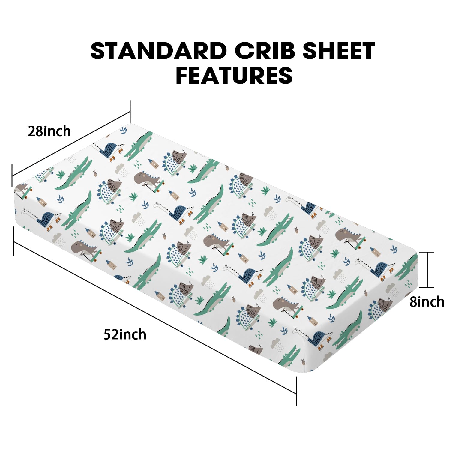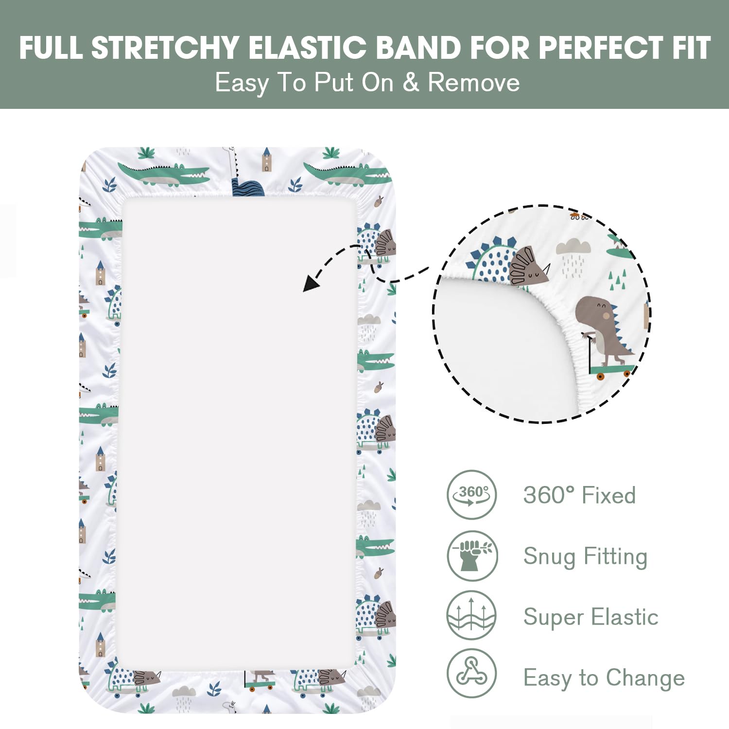 MATERNAL LOVE - Specially crafted for babies, this pretty crib sheet for babies is fabulously printed with cute dinosaur. The other one is solid green matches the print sheet. These simple printings match any style baby bedding;
