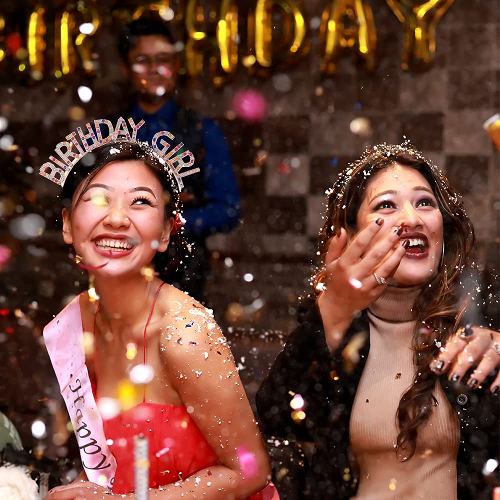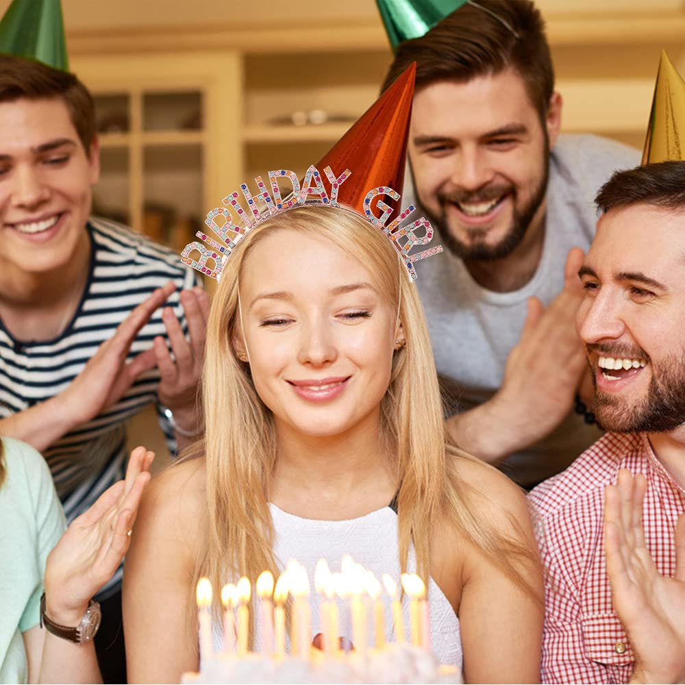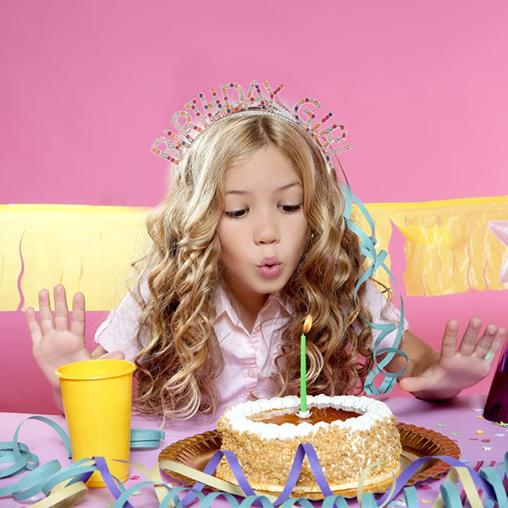 Made of flexible metal, 5.5 inch Length and adjustable width, birthday girl headband fit for most head size.