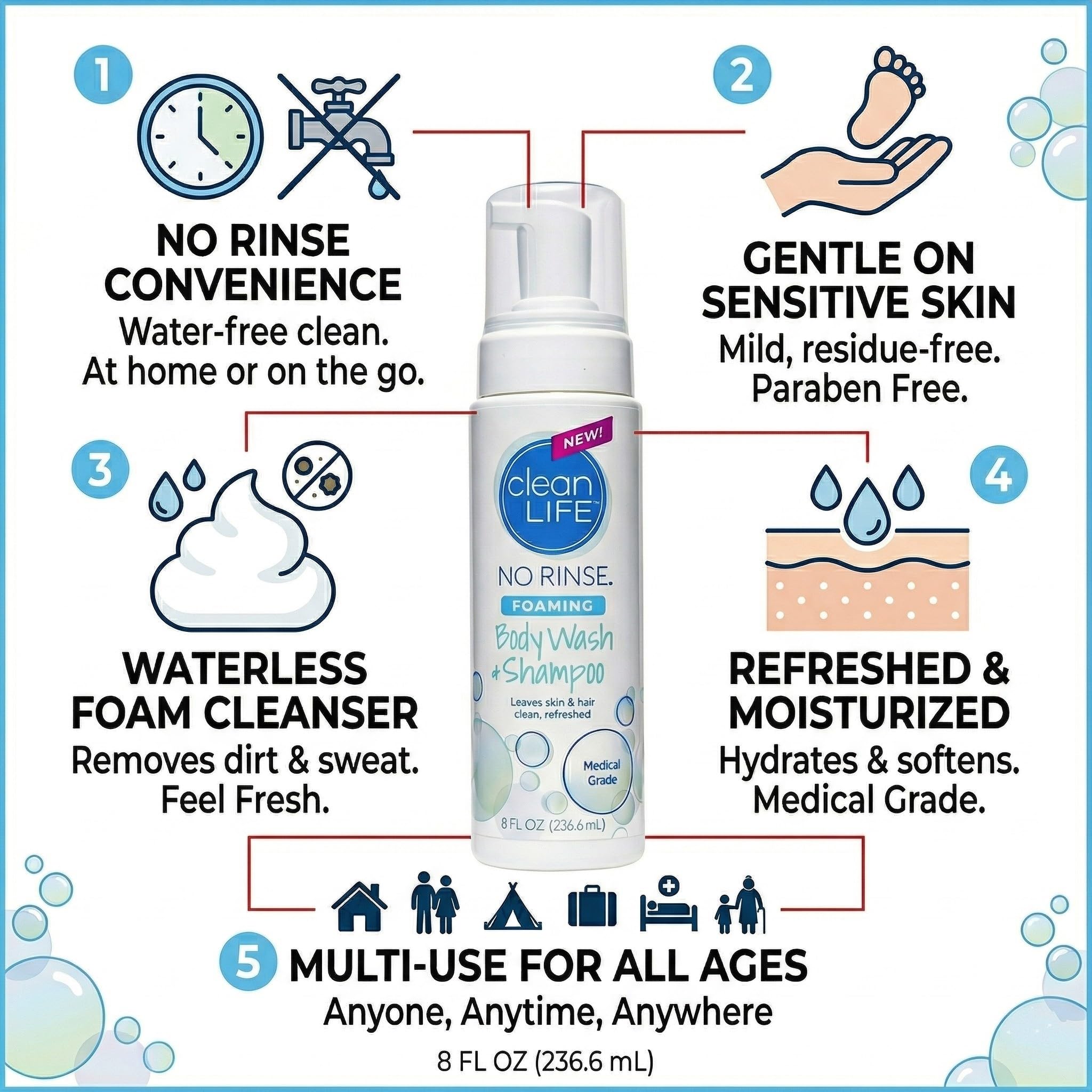 NO RINSE CONVENIENCE: Enjoy a full-body clean without water—ideal for bedside patient care, travel, outdoor use, or busy mornings when showering isn’t practical or possible