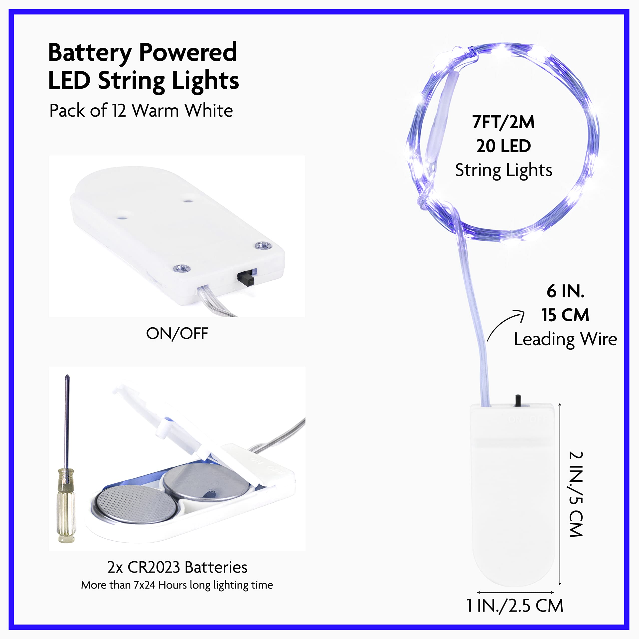 Flexible and Versatile: 12 packs of 20 LED fairy lights are made of 7ft long flexible copper wire, they are very soft and can be easily shaped into the shape you want, when you place them in a glass bottle these fairy lights look like Many beautiful fireflies can also be wrapped around stair railings, trees, railings, fences, tents, etc. to decorate your party