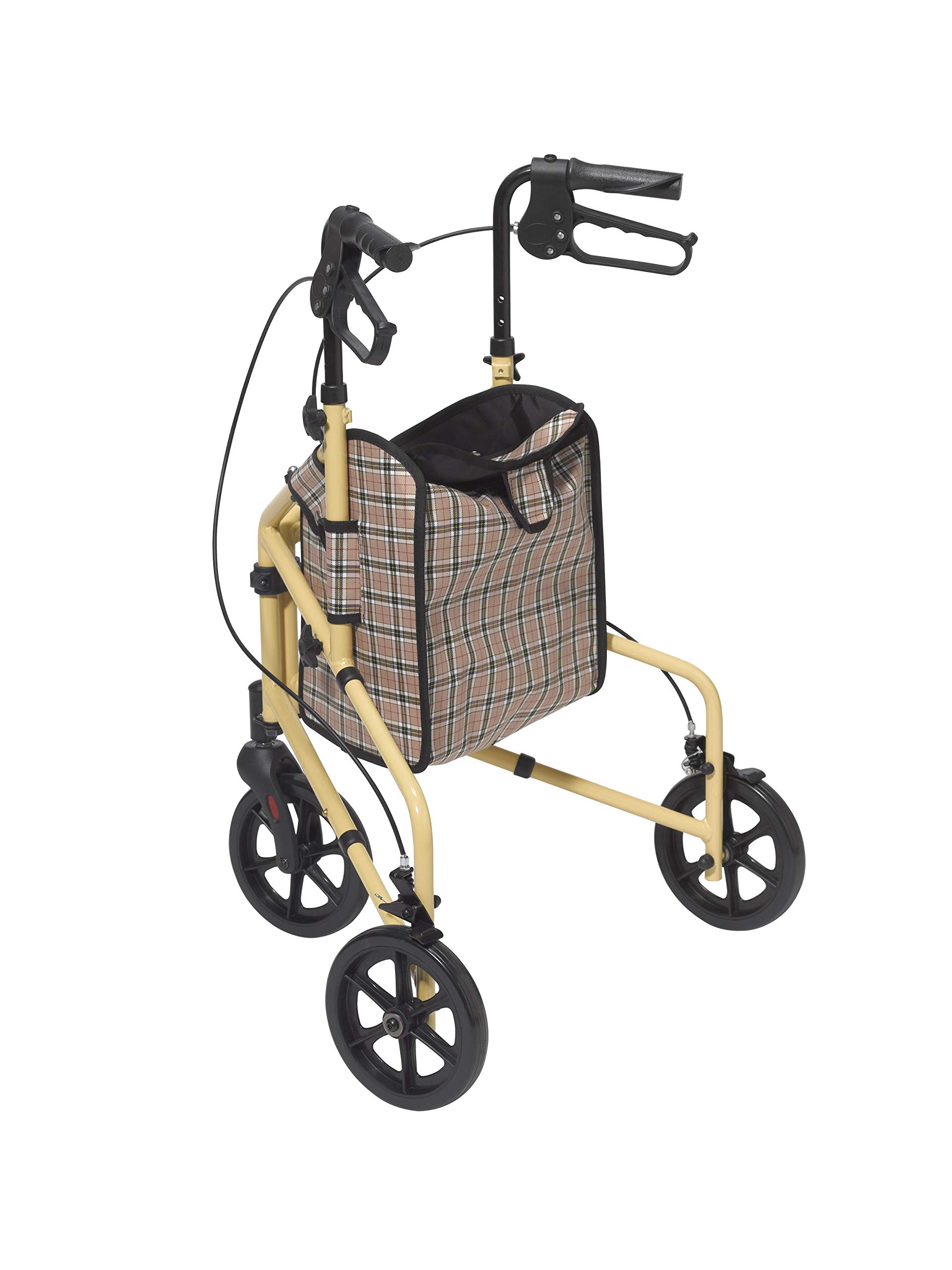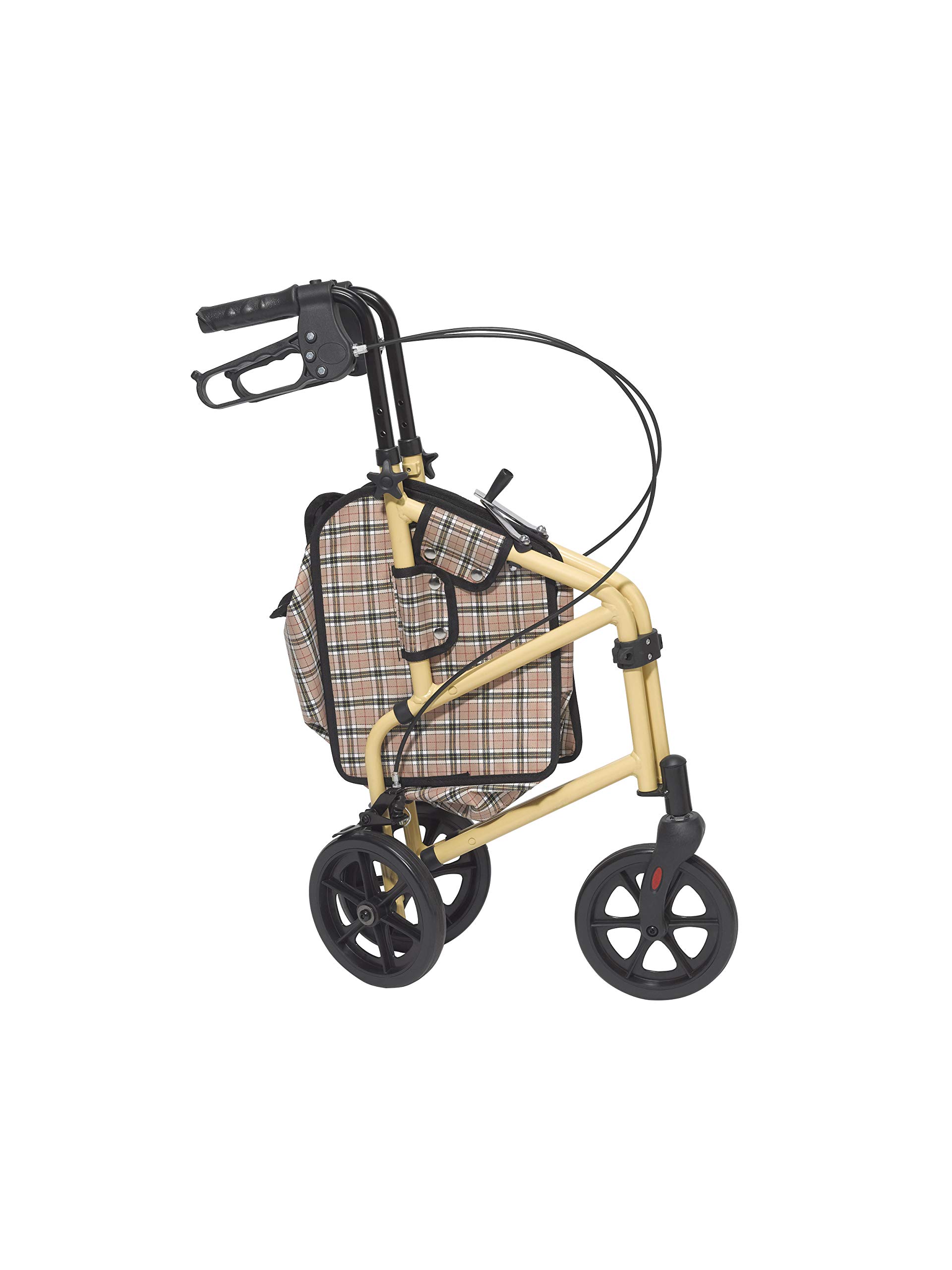 The Winnie Lite Supreme/Go-Lite 3-wheel walkers for seniors and disabled individuals come in an attractive tan finish. Featuring lightweight, solid 7.5" tires, this medical walker is for indoor and outdoor use and ensures a smooth ride over most surfaces. This folding walker includes special loop locks, adjustable handles, and brakes. Also included is a large, removable pouch designed to keep personal items close. Backed by a limited lifetime warranty from Drive Medical, a leading brand of mobility aids and other medical goods for more than 20 years, you can purchase with confidence.