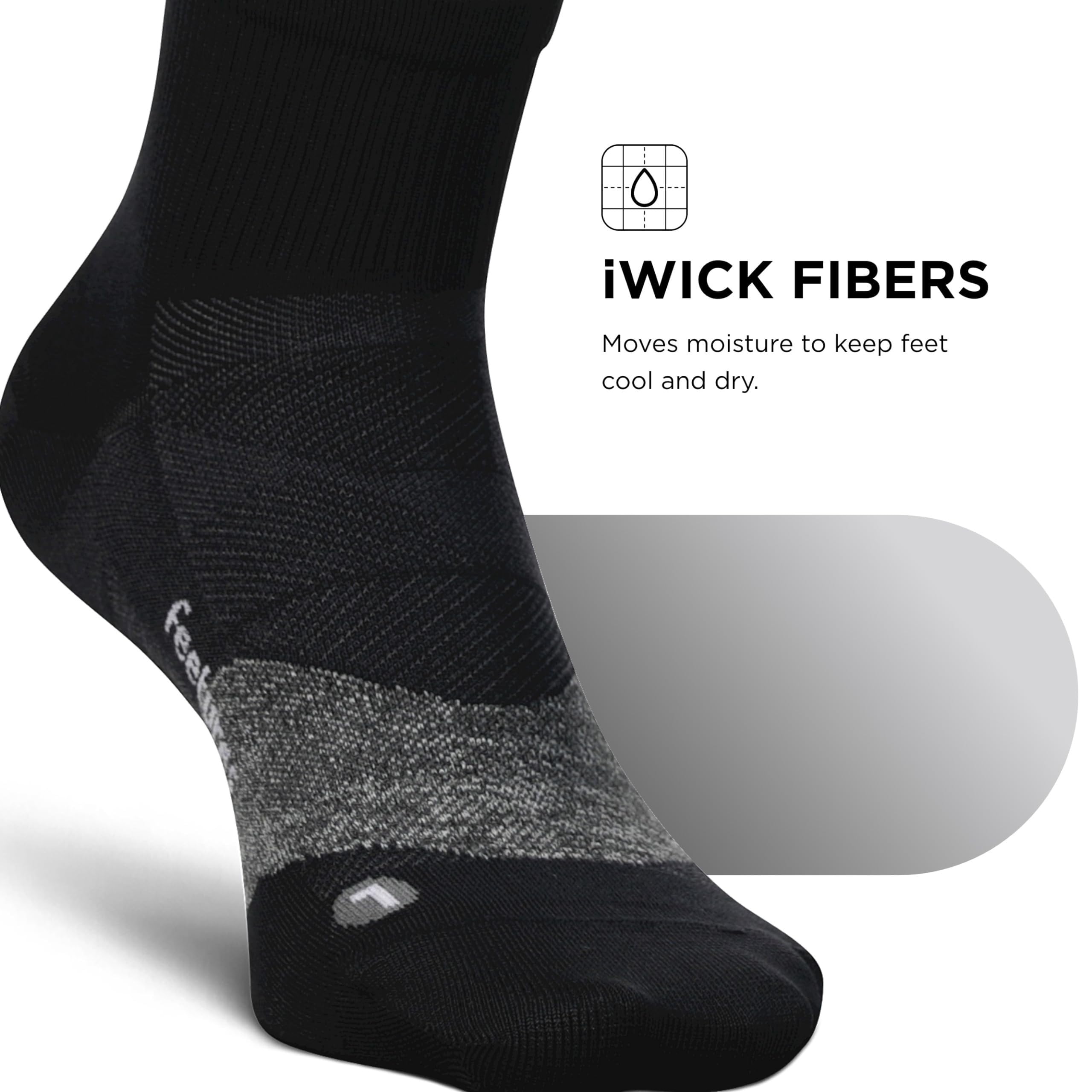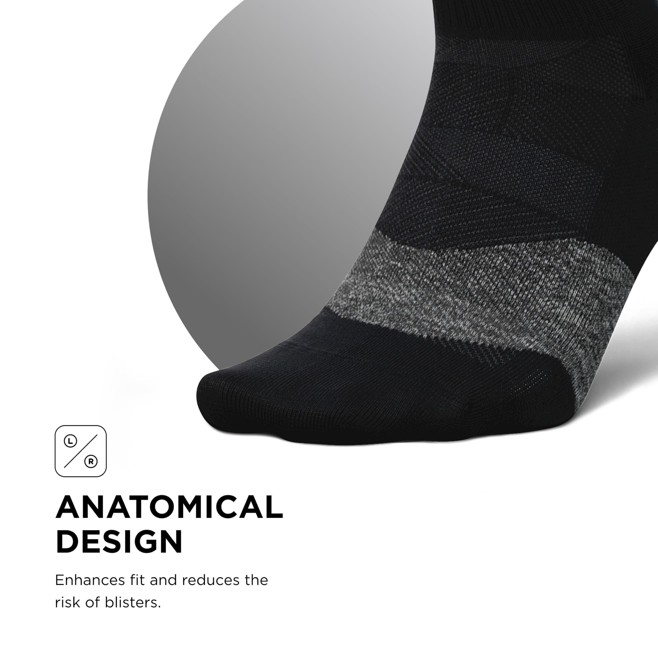 Athletic Socks: These Feetures socks are engineered with Targeted Compression and anatomical design that conform to the left and right structure of the foot providing a custom-like fit and reduced risk of blisters because of the seamless toe construction