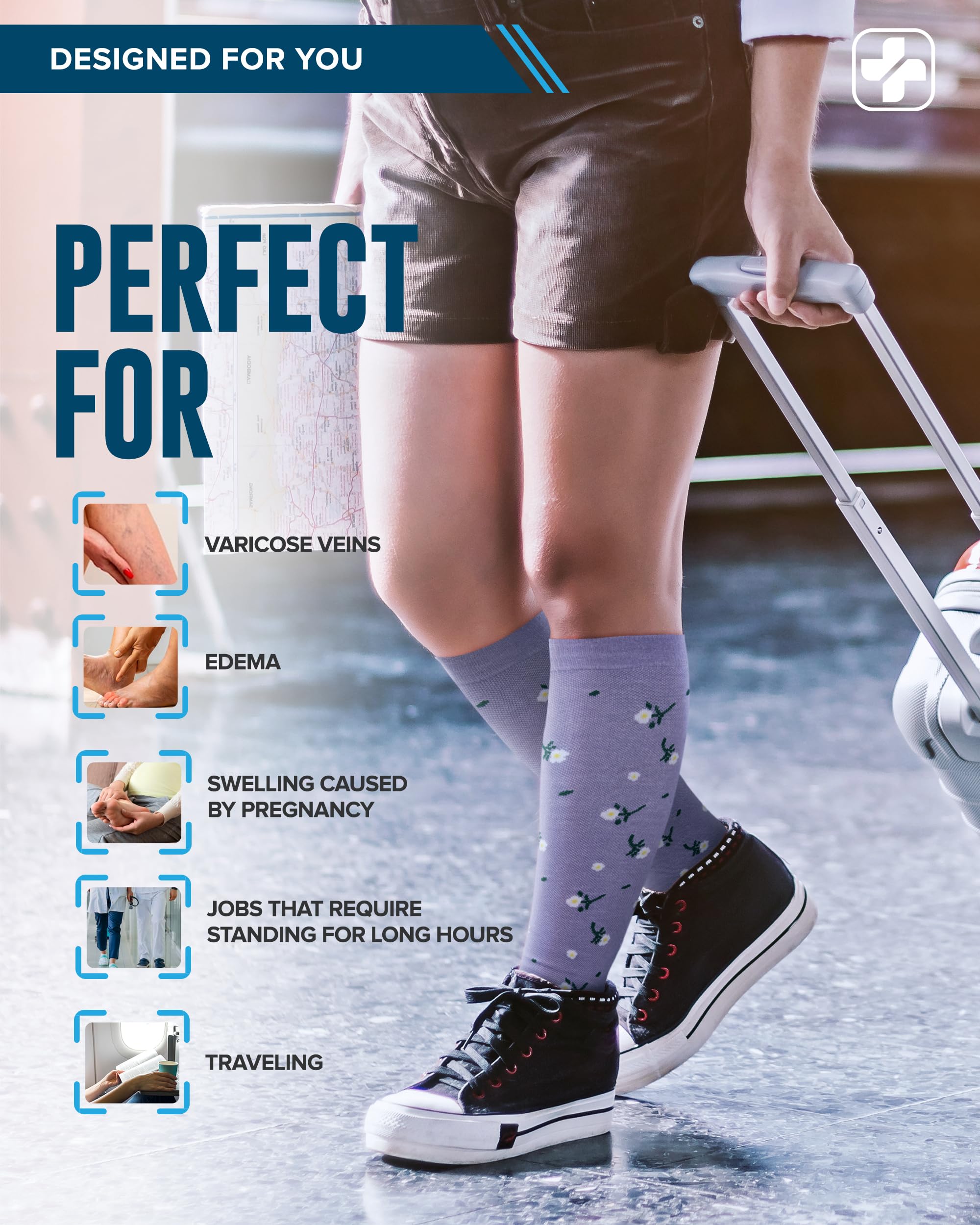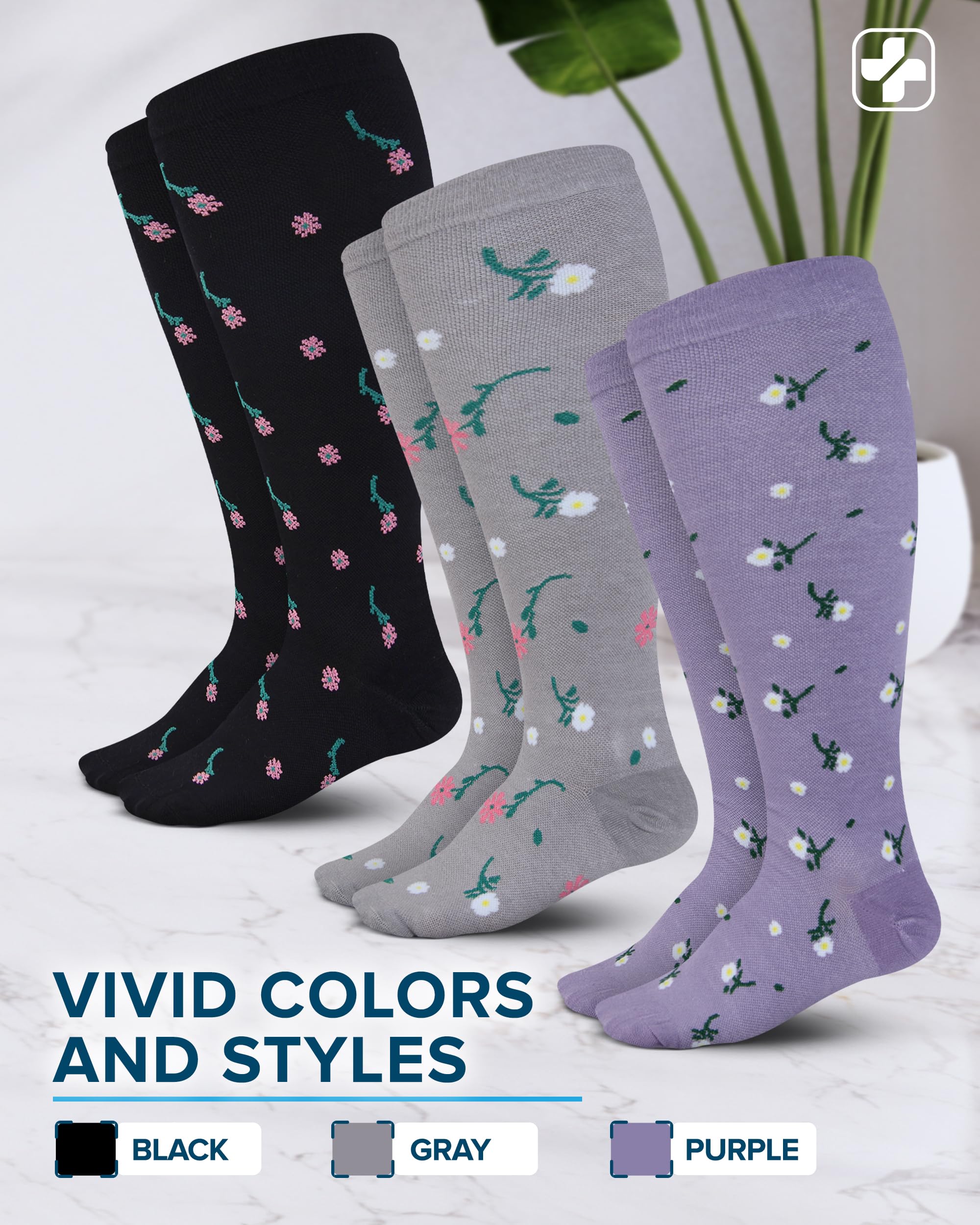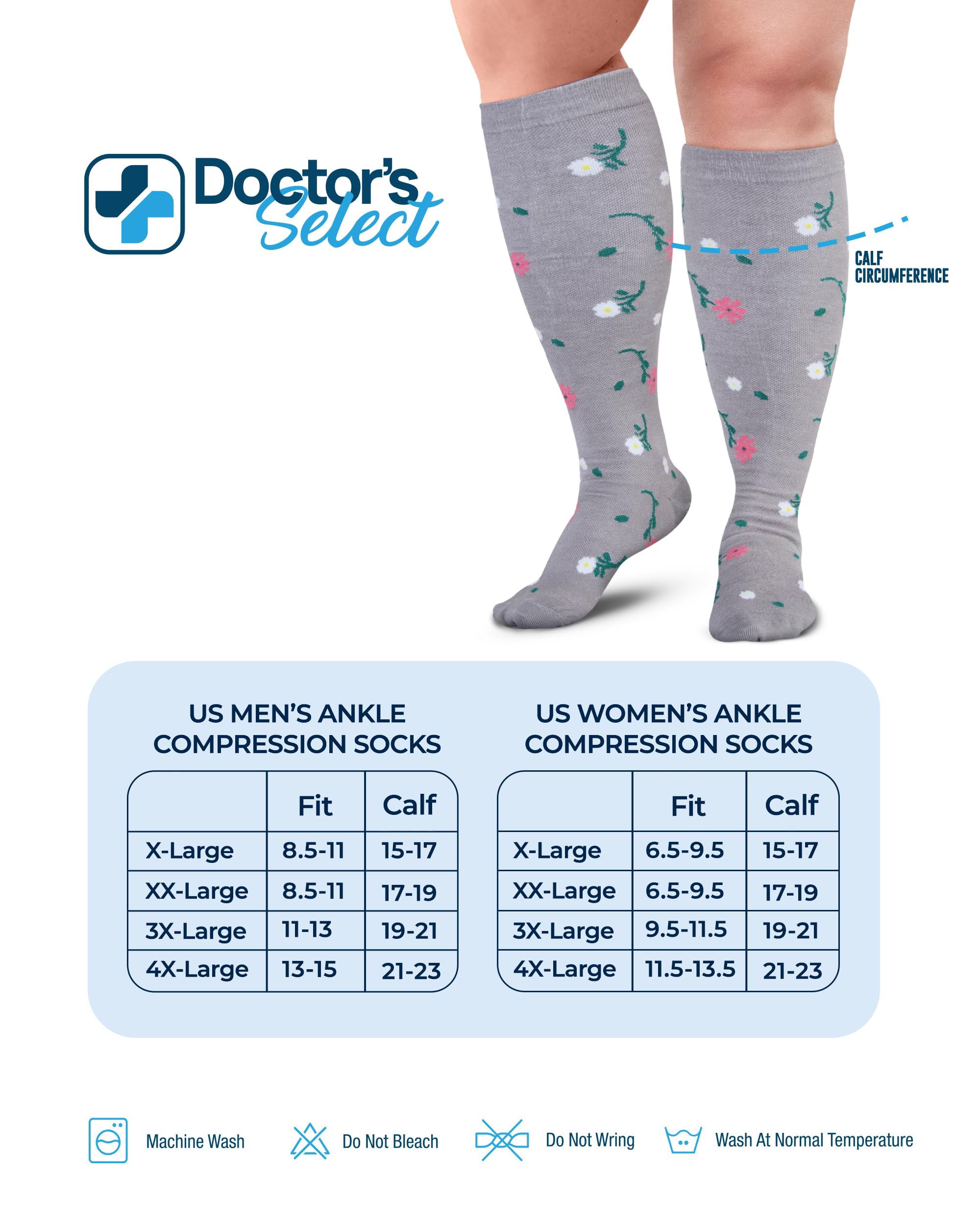 Vivid Colors and Styles - Designed with care, Doctor's Select wide calf compression socks for women and men feature colorful patterns that resist fading over time even after multiple wash cycles.