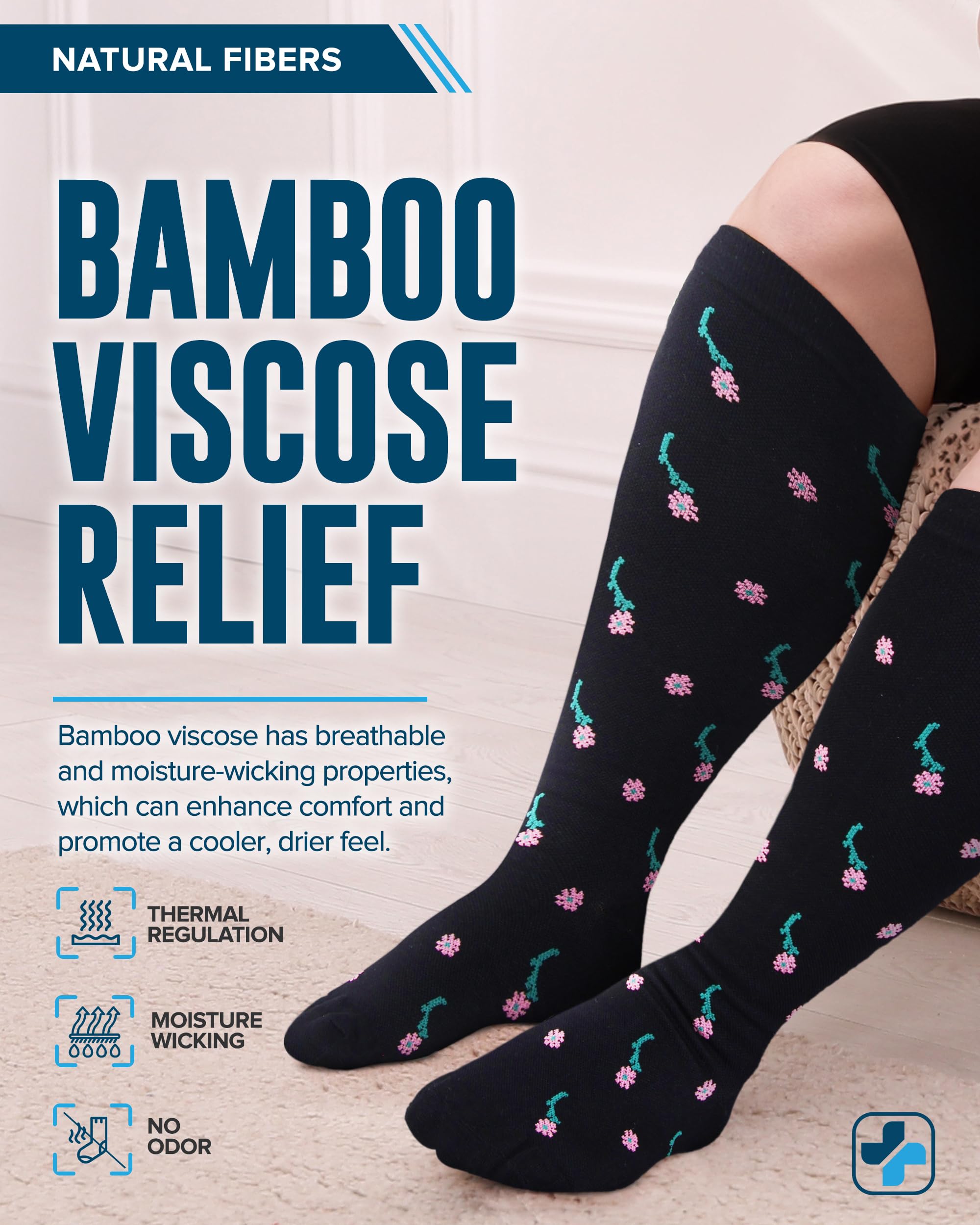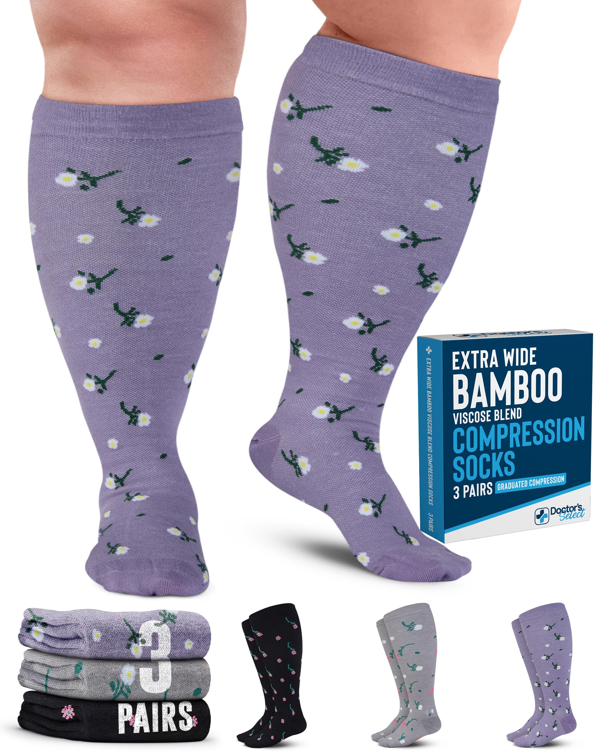 Premium Bamboo Viscose Blend - Discover freshness with Doctor's Select extra wide compression socks. With moisture-wicking and breathable properties, they are designed to keep feet dry and odor-free.