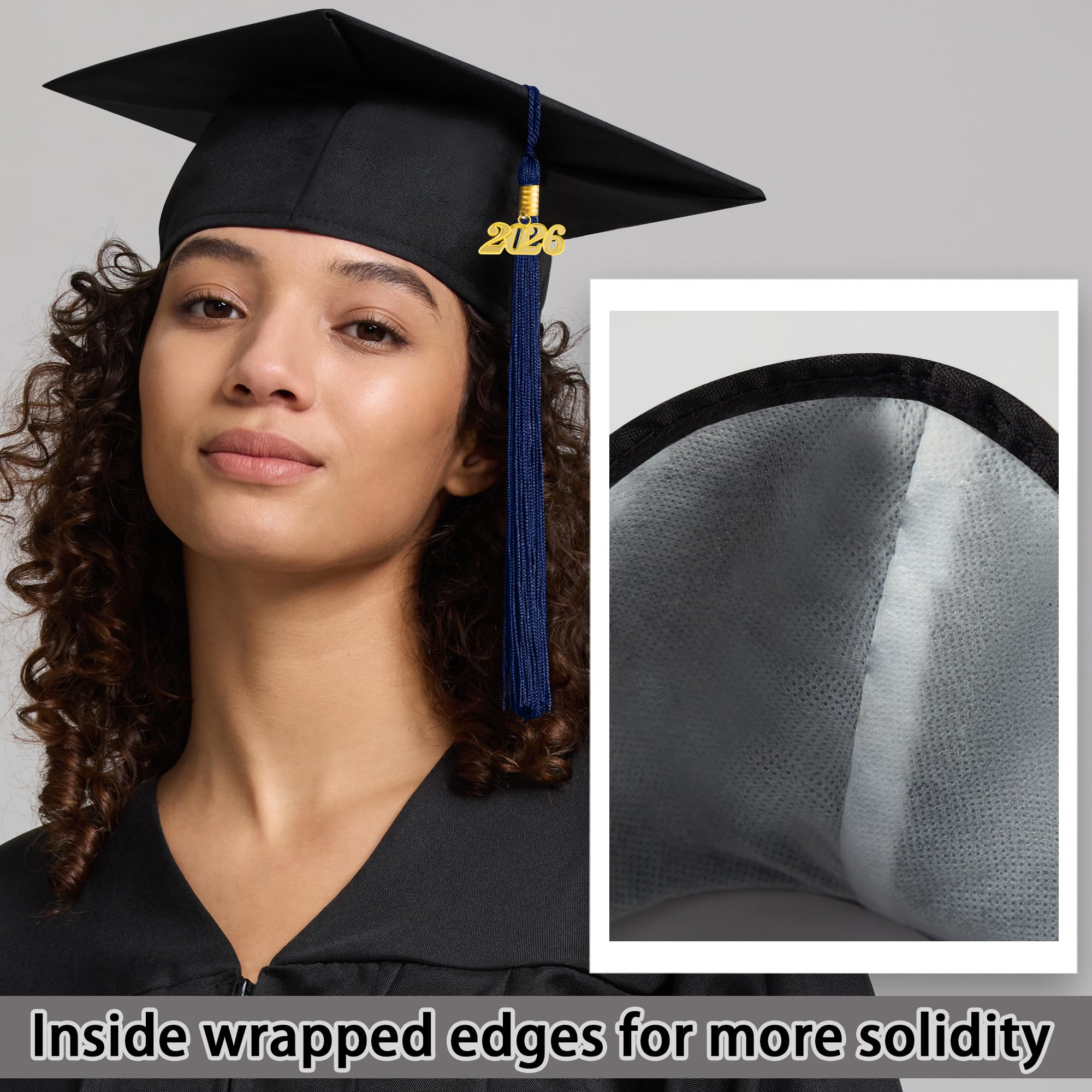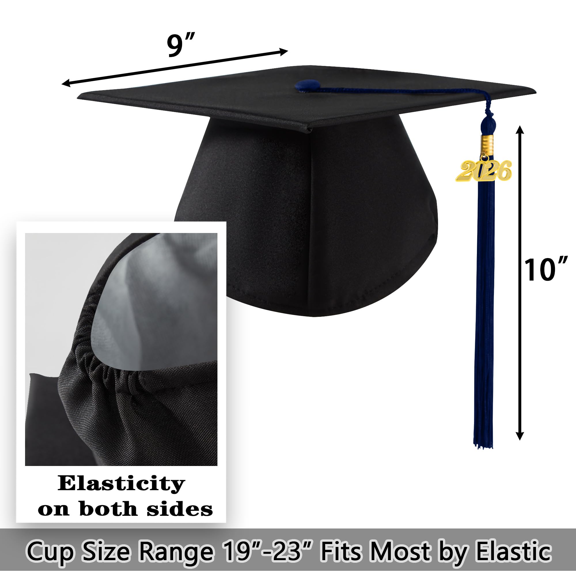 PRODUCT SPECIFICATIONS,PREMIUM MATERIAL:This graduation cap features a classic 9x9 inches hardboard top covered in high-quality matte polyester. It comes with a 9-inch long tassel and a detachable 2026 year charm. The elegant matte finish ensures you look professional and polished on your big day.