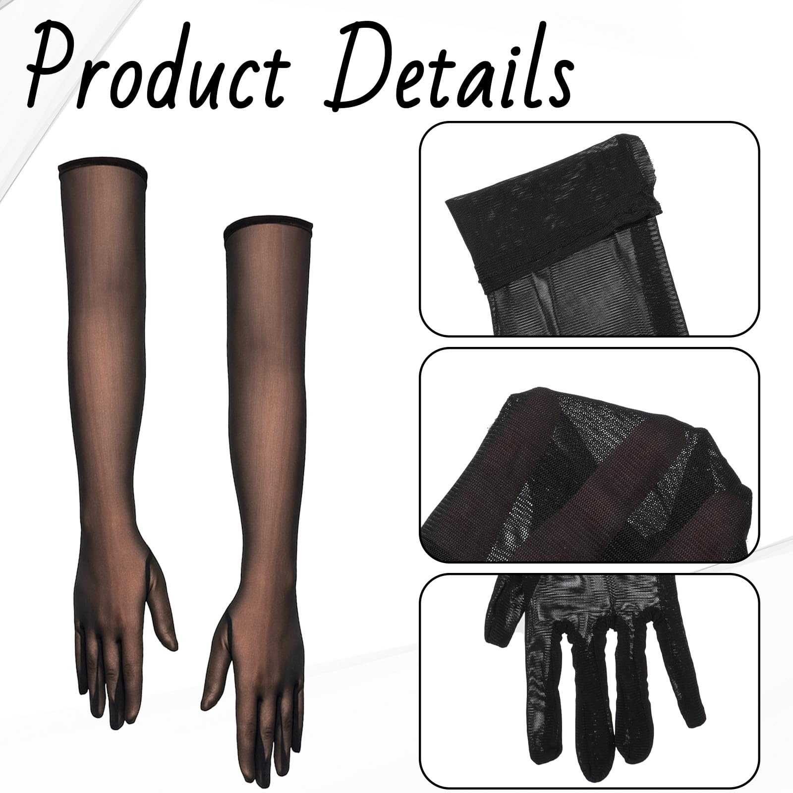 【Quality Material】: This elegant sheer mesh tulle glove is mainly made of Spandex Mesh, with fine workmanship, beautiful appearance, classic and versatile color, soft feel, comfortable and breathable to wear, giving you a comfortable wearing experience! One size fits most people