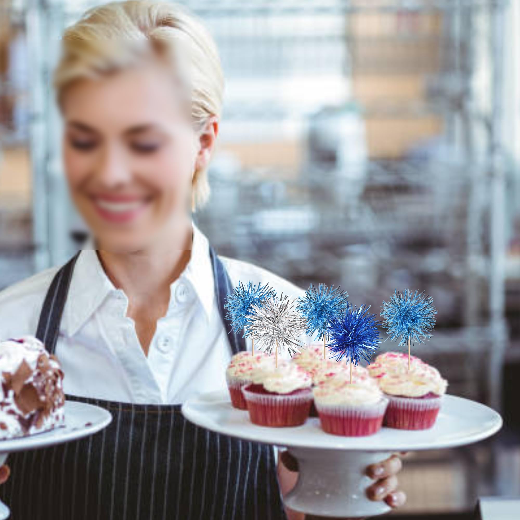 No Assembled Required ! These foil firework cupcake toppers are assembled in advance,so you don't need to DIY it by yourself,which can save you time and effort during the process of party preparation; You can insert them into your cake or cupcakes and adjust the suitable height to show better effects.