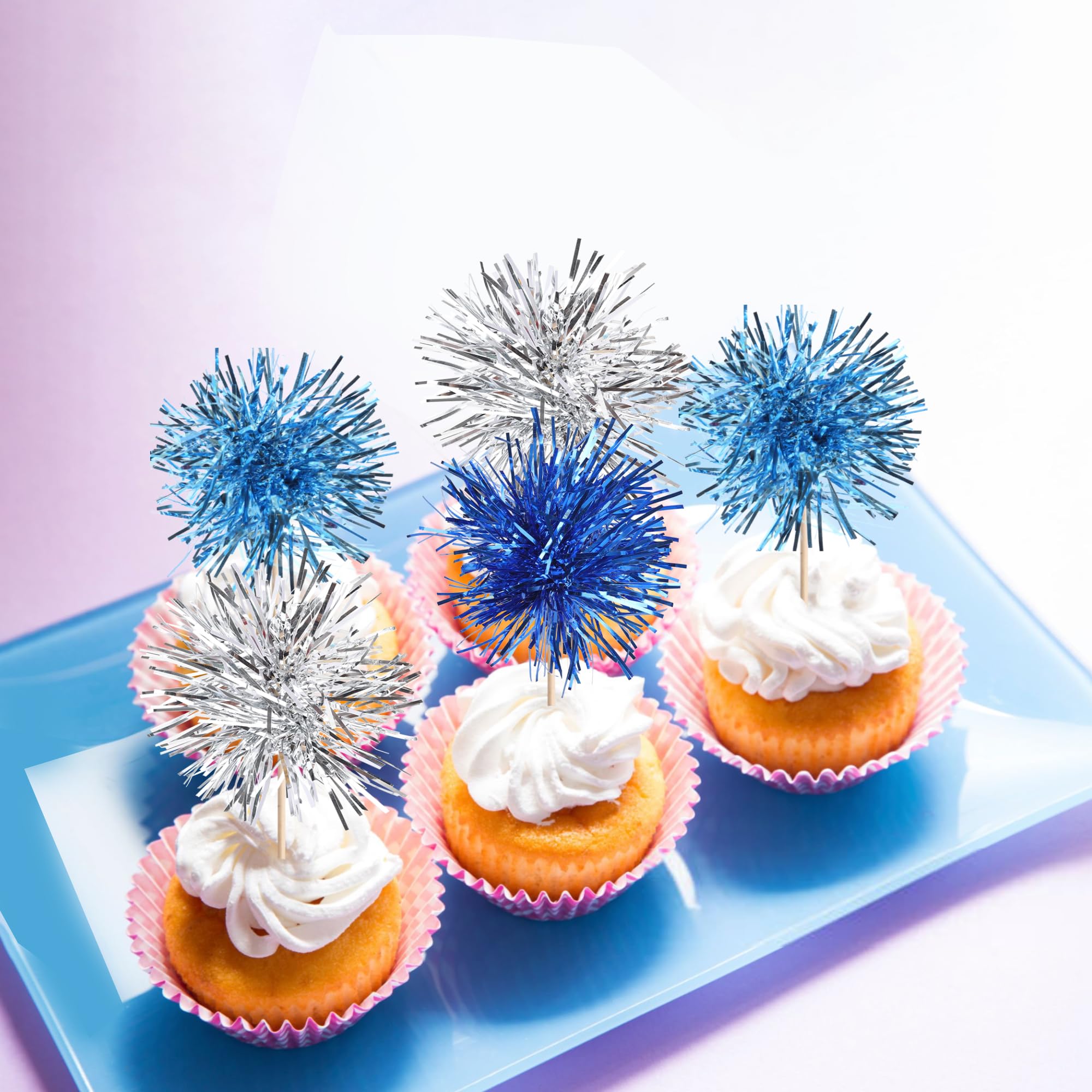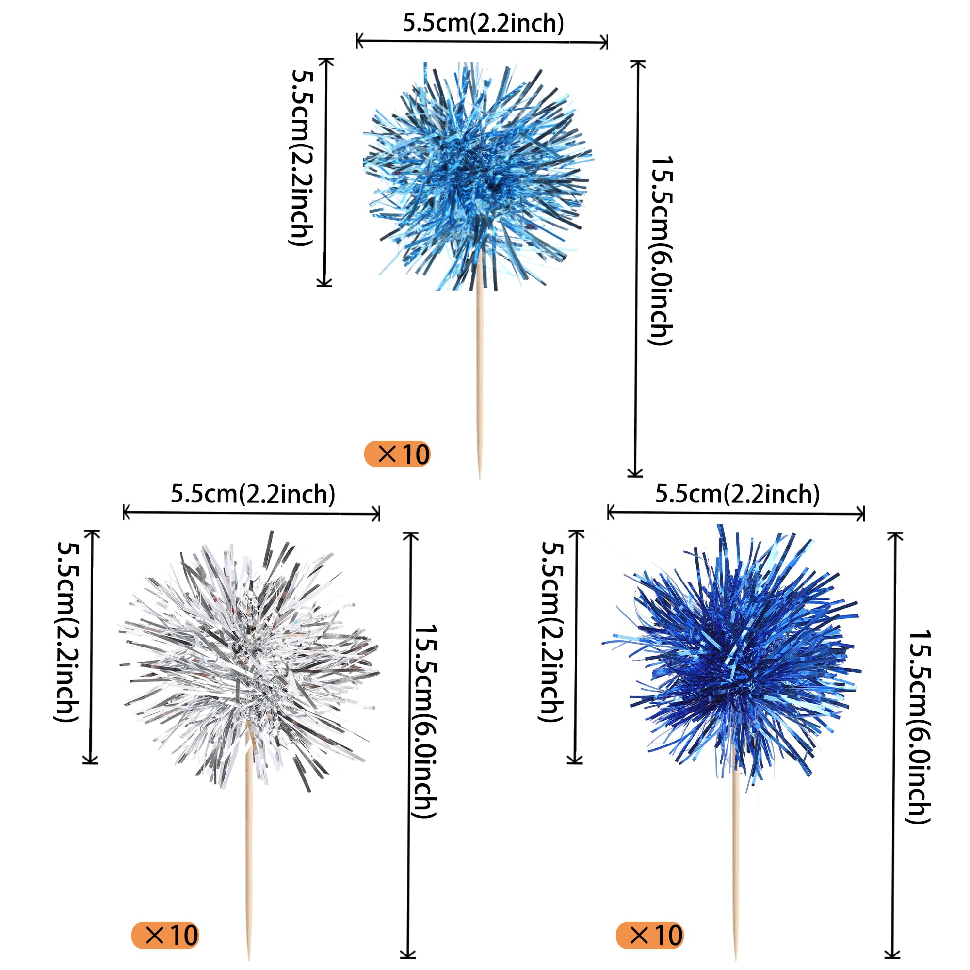 30 PCS Foil Firework Cupcake Toppers Sparkle Tinsel Cupcakae Picks Foil Firework Decorations Cocktail Fruit Toothpick for Fireworks Theme Birthday Wedding Graduation Party Cake Decorations Supplies Perfect for foil firework theme party, baby shower theme party, wedding bridal shower theme party, valentine's day theme party, kids boys girls birthday theme party cupcake decorations supplies. Pack of 30 pcs. The size is 2.2 *6.0 inch ( with stick ) Made of high quality paper card stock,thick and sturdy. These foil firework cupcake toppers are double sided printed, and they are intended for decoration only, please do not put them in oven or microwave. If the item you received has any defects, please contact us immediately. we will deal with it within 24 hours.