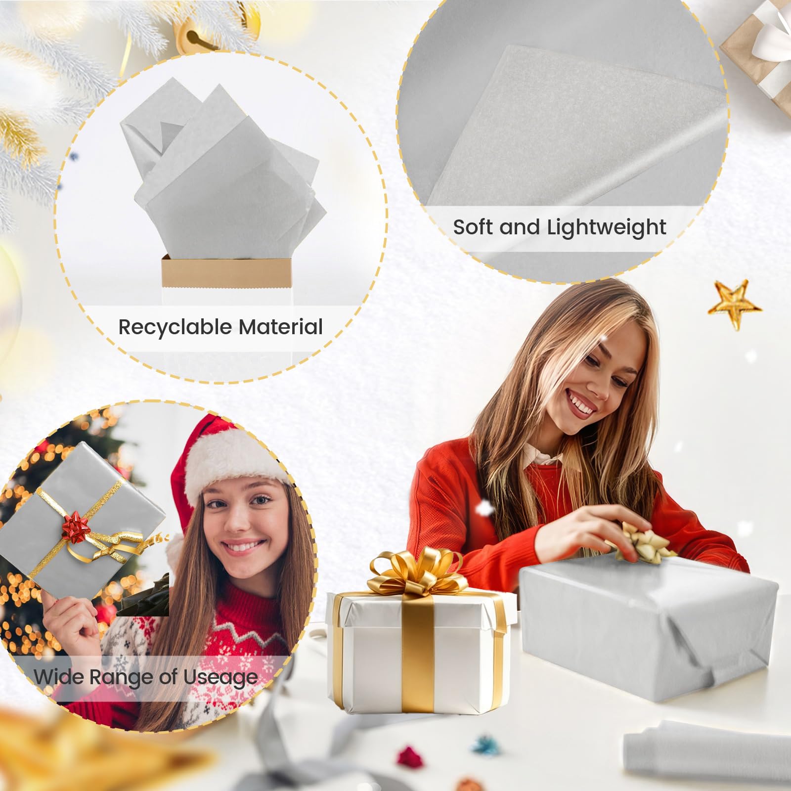【High Quality】- The surface of silver tissue paper looks smooth, made of high-quality paper, it is soft but strong, safe and reusable