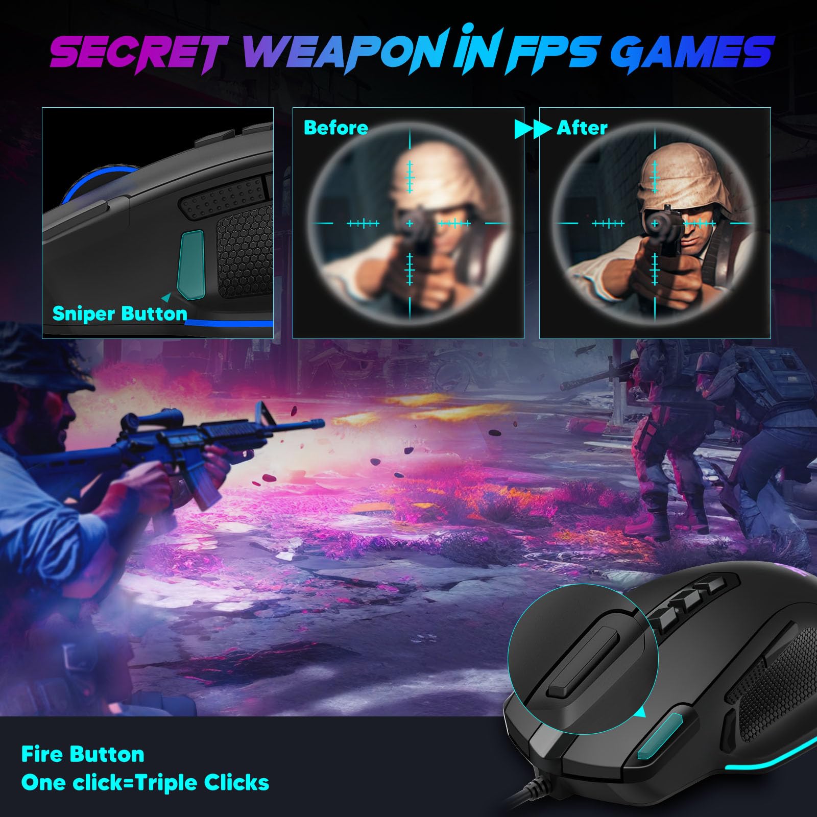 Precision Tuning for Battlefield Dominance- Our M614 Gaming Mouse Features with 5 default DPI levels(1200/2400/3500/5500/8000)) and multiple adjustable DPI(250-8000) via driver for exceptional gaming precision and responsiveness, making it effortless to conquer your foes in intense battles