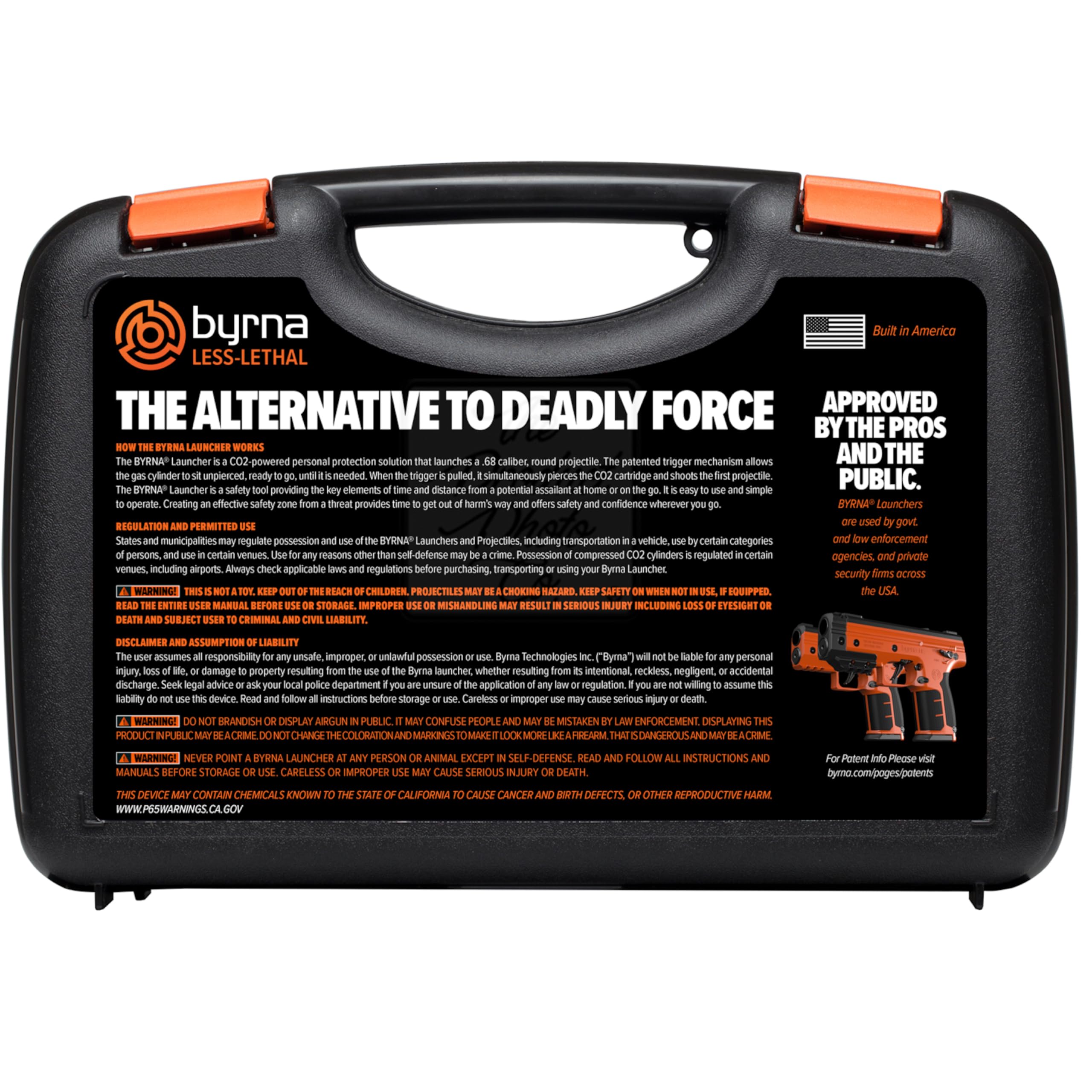 WHAT'S IN THE BOX: Byrna LE Launcher, Byrna Carrying Case, Eco-Kinetic Training Ammunition (5 ct.), 2 (two) Kinetic Training / Self Defense Ammunition Tubes (10 ct. total), 12g CO2 Canisters (7 ct.), Additional (50 ct.) Bag Kinetic Training / Self Defense Ammunition, 5-round Magazines (2 ct.)
