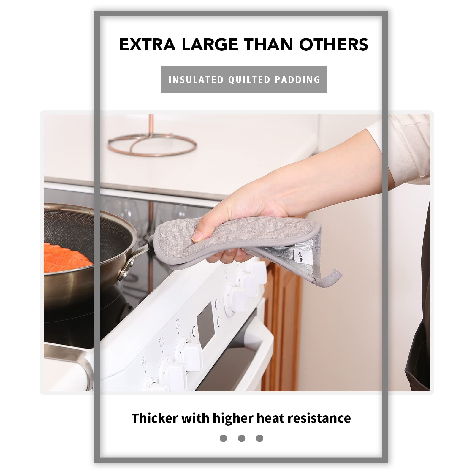 QUILTED AND PADDED - Heat resistant up to 400 degrees allowing safe removal of baking dishes and cast iron from the oven and hot pots from the stove.