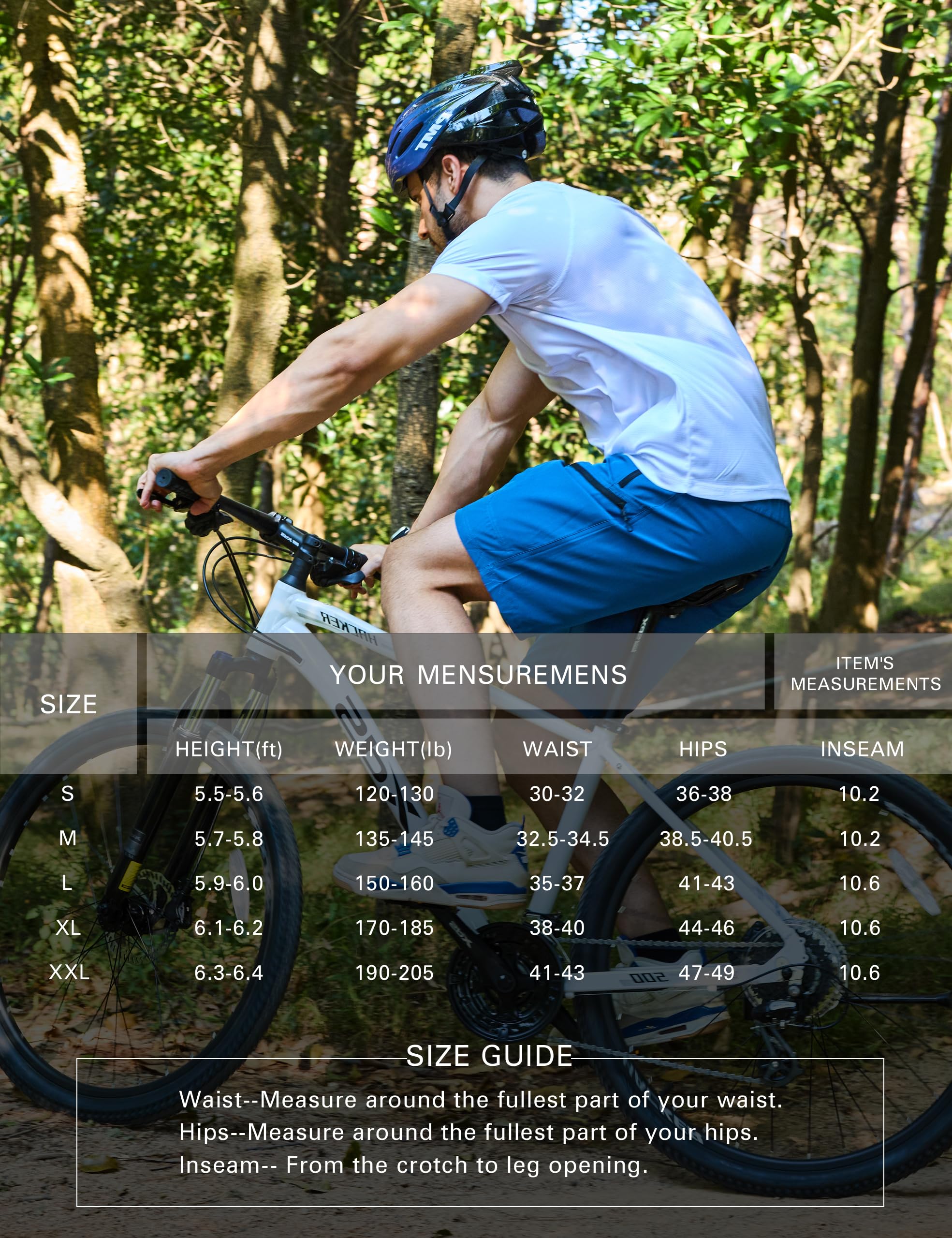 Adjustment Waist:Elastic waistband with inner drawcord for an adjustable fit.The casual, stylish mtb shorts design looks completely normal and you can walk into the coffee shop or brewery and fit right in after the ride