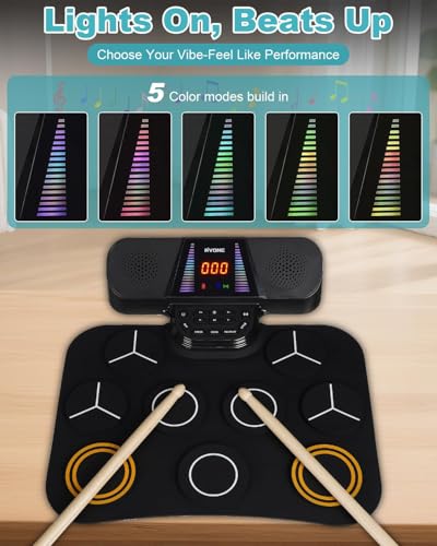 [5 Interactive Light Modes – Play with Rhythm & Fun]RED50 drums for kids Five colorful LED lights guide boys and gilrs to follow the beat, improving timing, focus, and musical engagement.