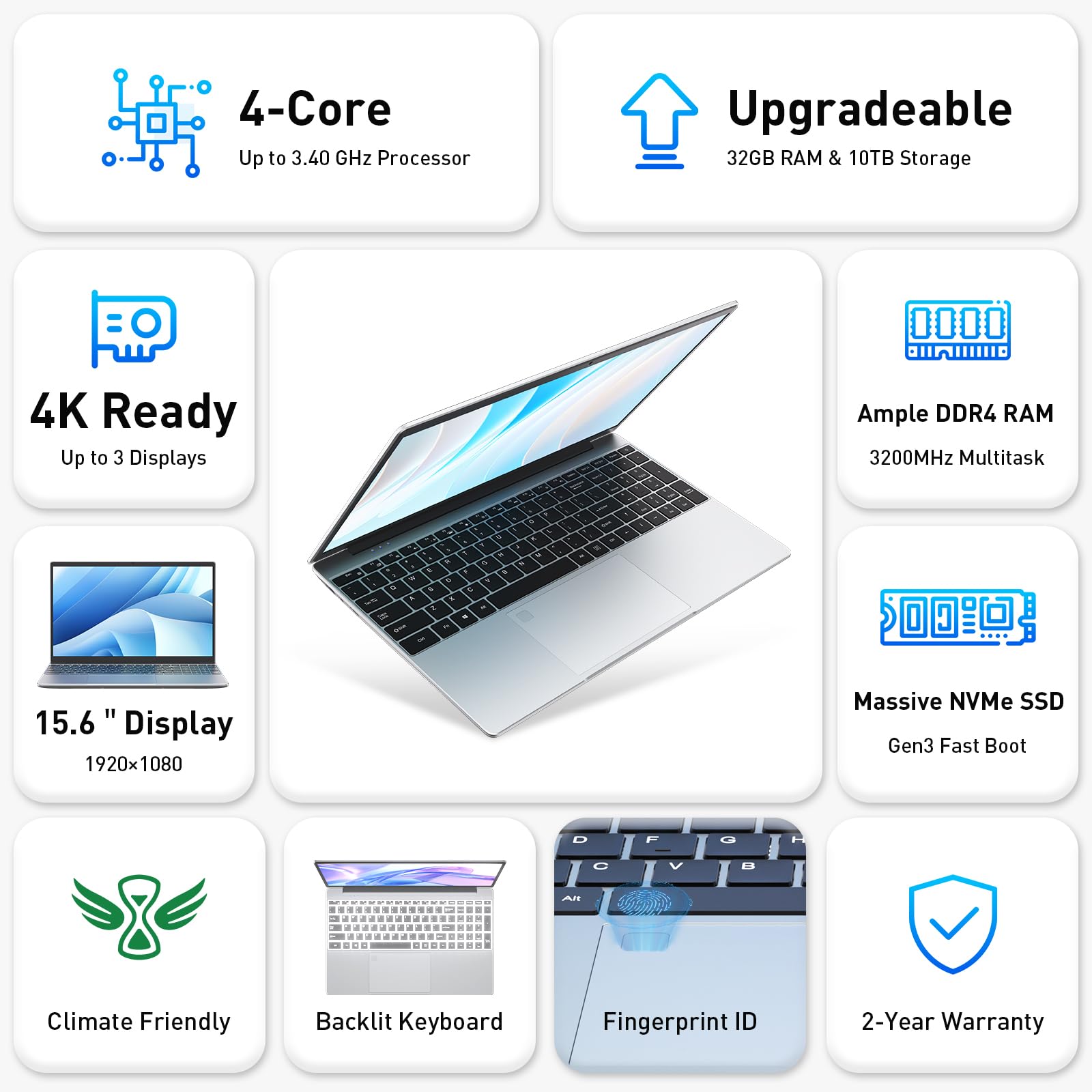 Fluid Memory: 16GB DDR4 3200MHz RAM (upgradable to 32GB) effortlessly handles multiple apps, browsers, tabs and files simultaneously without slowdown