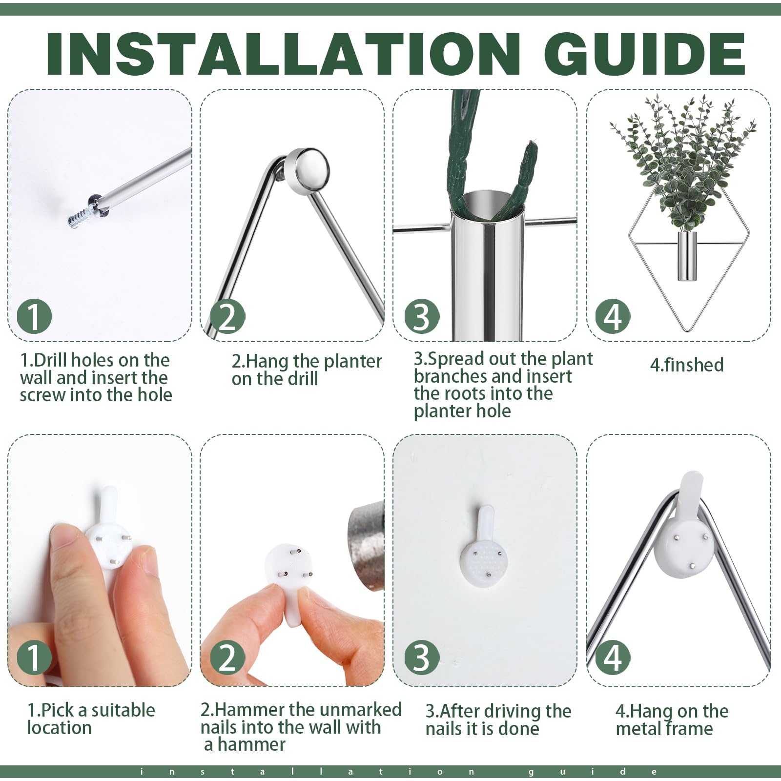 Simple and Generous: the geometric wall hanging vase is designed in triangle and rhombus shape, coordinate with chrome sliver color, the collision of metal iron and flower, its simple design let it look elegant and generous, and is suitable for a variety of decoration styles, such as modern style, minimalist style, rustic style and more