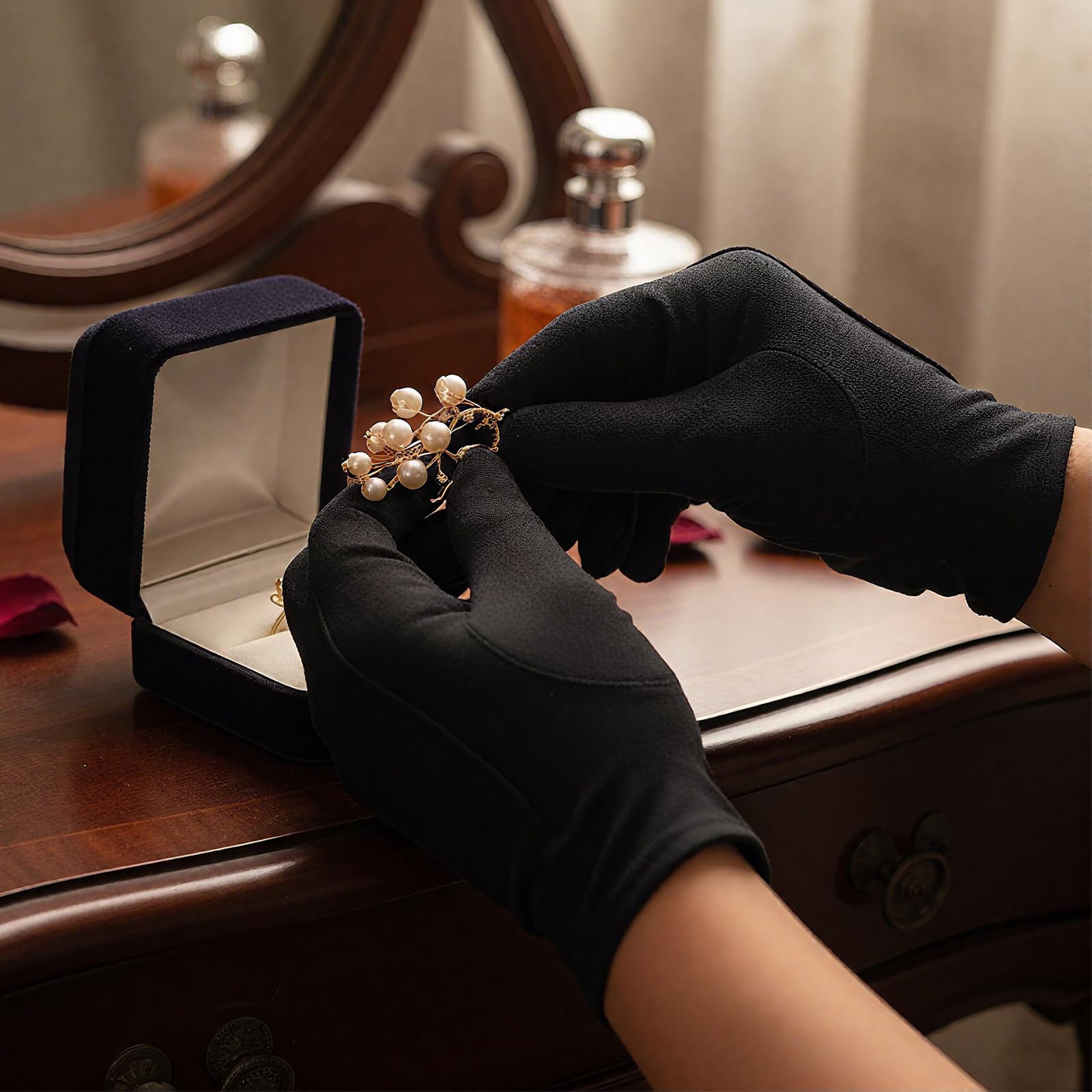 Description 2 Pairs black stitched gloves Your favorite gloves: The stitched gloves are comfortable and soft to wear and skid-proof with great workmanship for use in catering, formal, tuxedo, jewelry inspection and so on. A good choice as gift