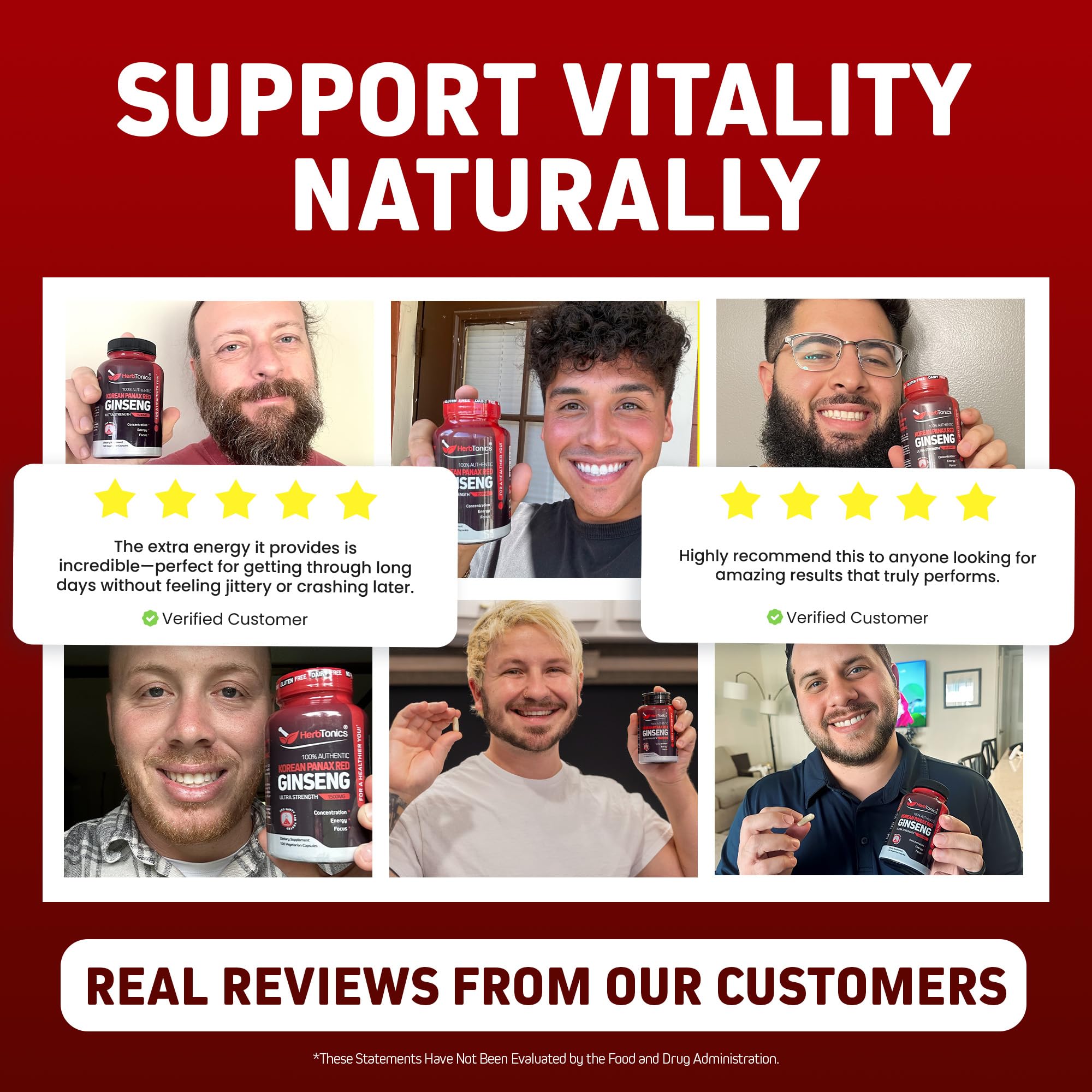 SUSTAINED NATURAL ENERGY: Boost daily energy levels without jitters; Our 1500mg Korean Red Panax Ginseng supplement enhances blood flow and combats fatigue, helping you power through work, workouts, and busy days naturally.