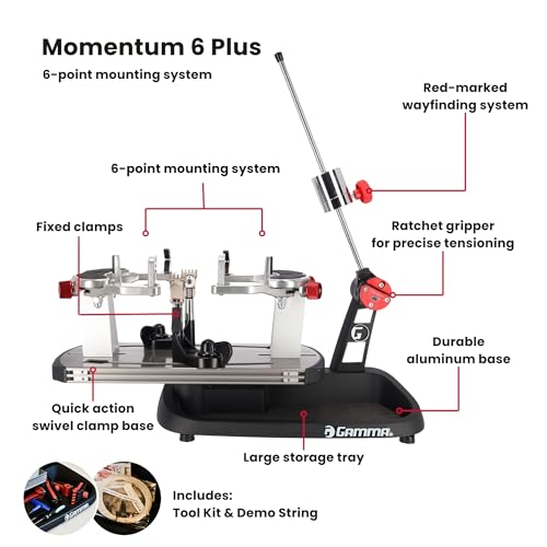 Upgrade your stringing experience with the GAMMA Momentum Stringing Machines, designed for home stringers and beginners seeking professional-quality results at an affordable price. These sleek, modern machines are built for durability and long-term reliability, ensuring consistent performance over time. Featuring a user-friendly design with intuitive controls, the Momentum Stringing Machines make setup and operation effortless. The red-marked touchpoints provide clear guidance, allowing for smooth and efficient stringing—perfect for those just starting out or experienced stringers looking for a dependable tool. With a combination of precision engineering and ease of use, the GAMMA Momentum line is the ideal choice for any stringing setup. Take your stringing game to the next level with a machine that delivers accuracy, speed, and consistency—every time!