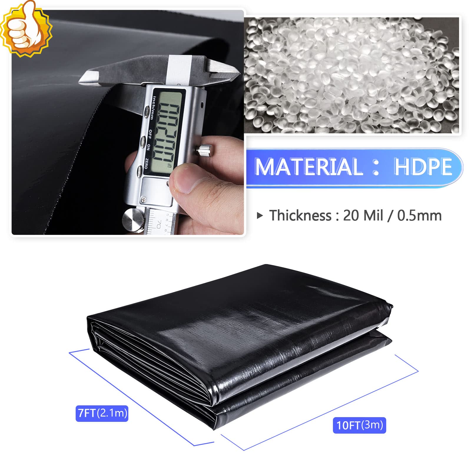 [Safety Material] Koi Pond Liner is made of HDPE material, it has good softness, extensibility, 20 mil thickness liner is UV and puncture resistant, contains no plasticizers that can be used in outdoor ponds for a long time.