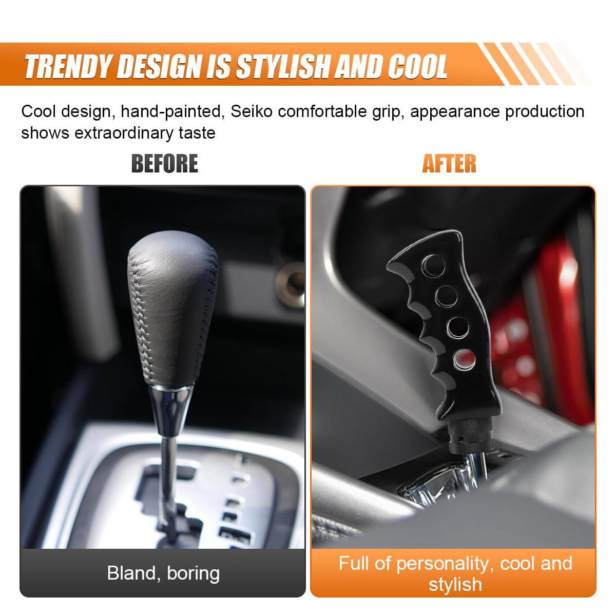 【Handle Shape】: The unique handle shape design of the car shift lever is ergonomic, with the curve of the hand, the shift is smooth and comfortable, adding color to your car, and perfectly complements your interior.