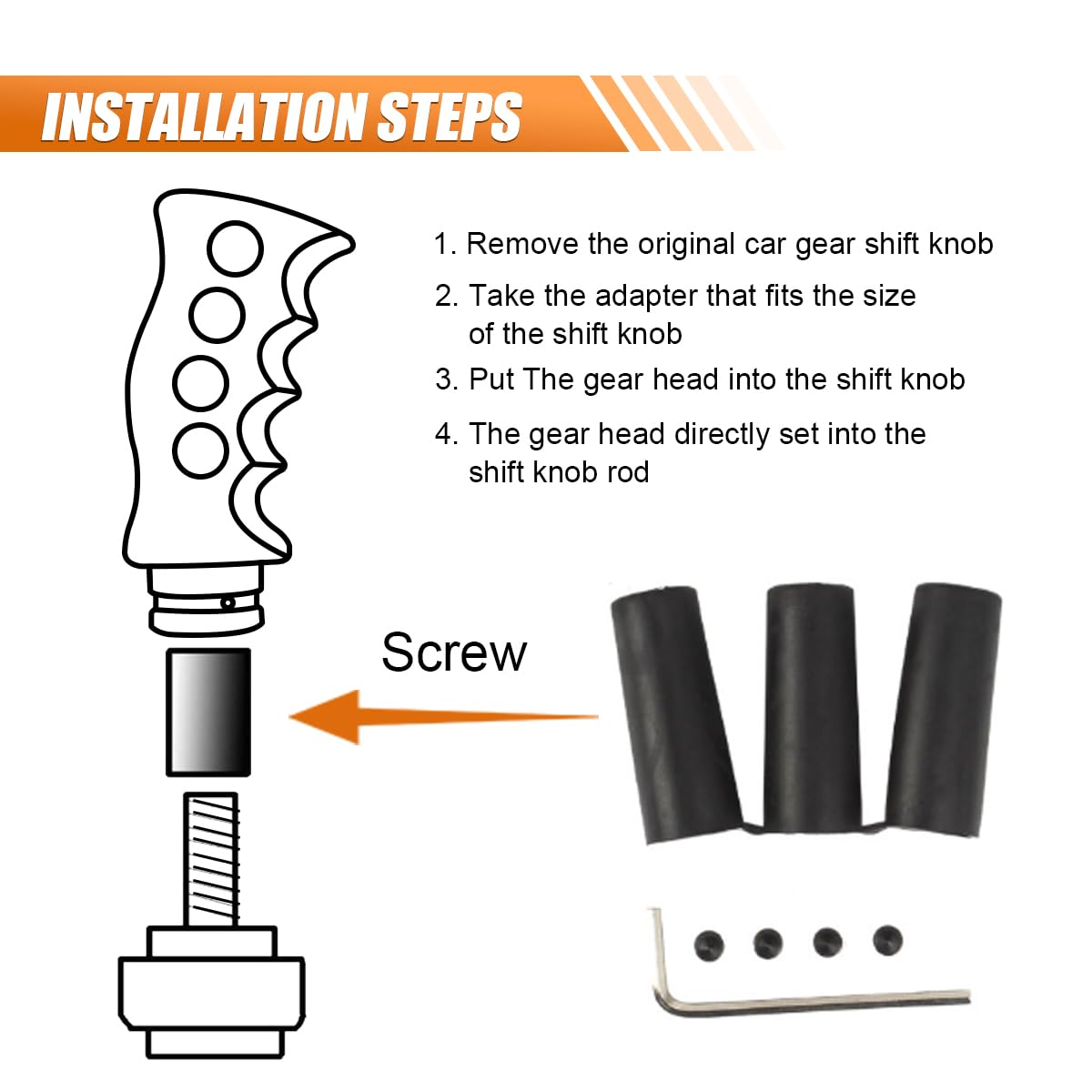 【Easy to Install】: The car shift knob is easy to install, simply remove the original shift knob, then select the appropriate adapter, install it on the shift lever, and finally tighten it.