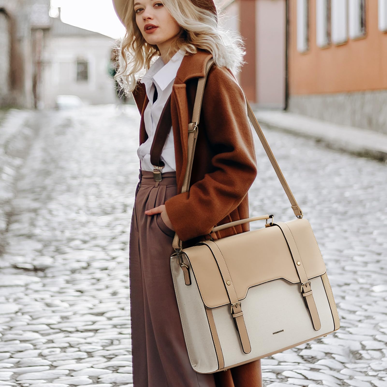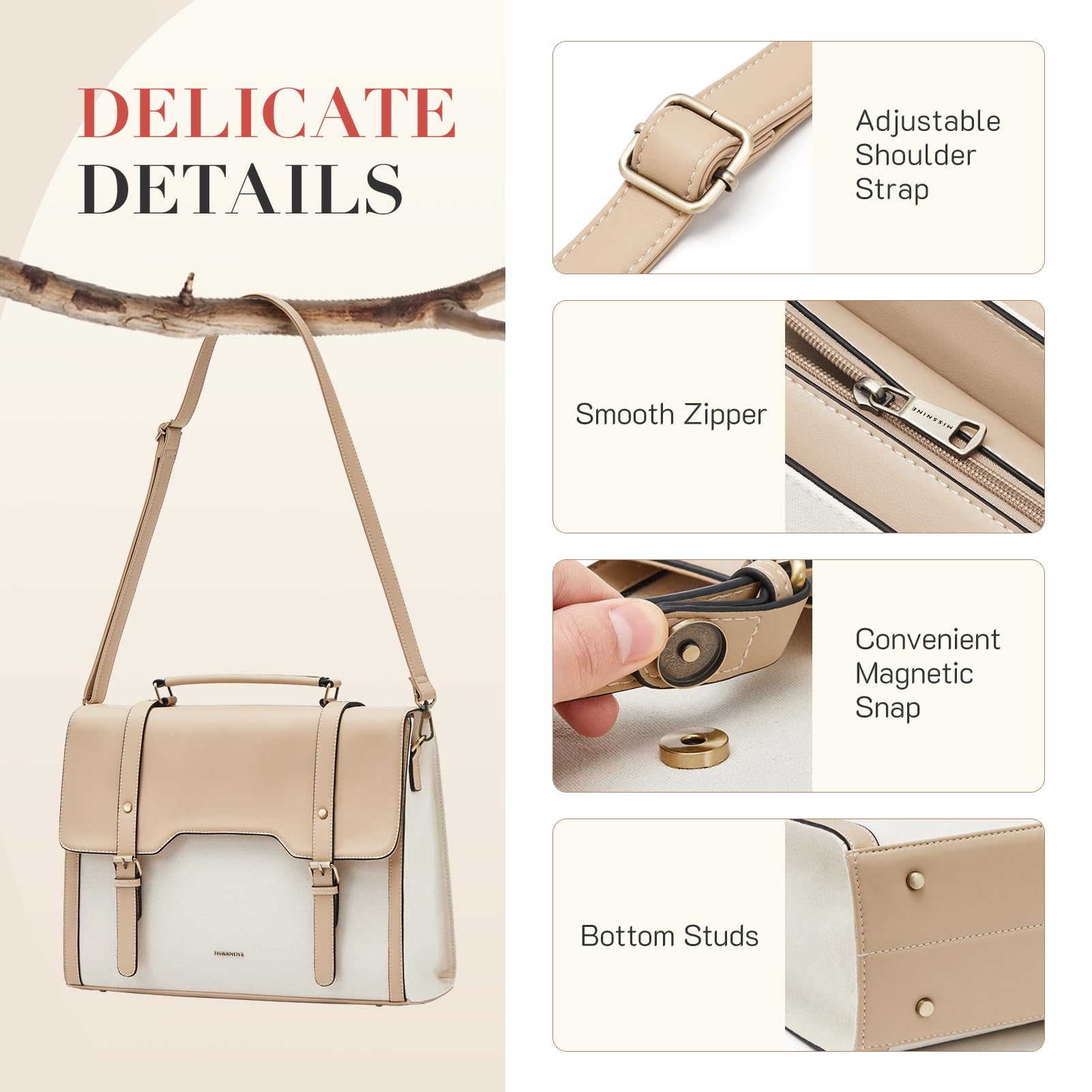 Multiple Carrying Options - Featuring a sturdy top-handle and a reinforcement shoulder strap in brass tone, durable and adjustable, the laptop bag can be carried in versatile ways as a work handbag, single shoulder, or cross-body.