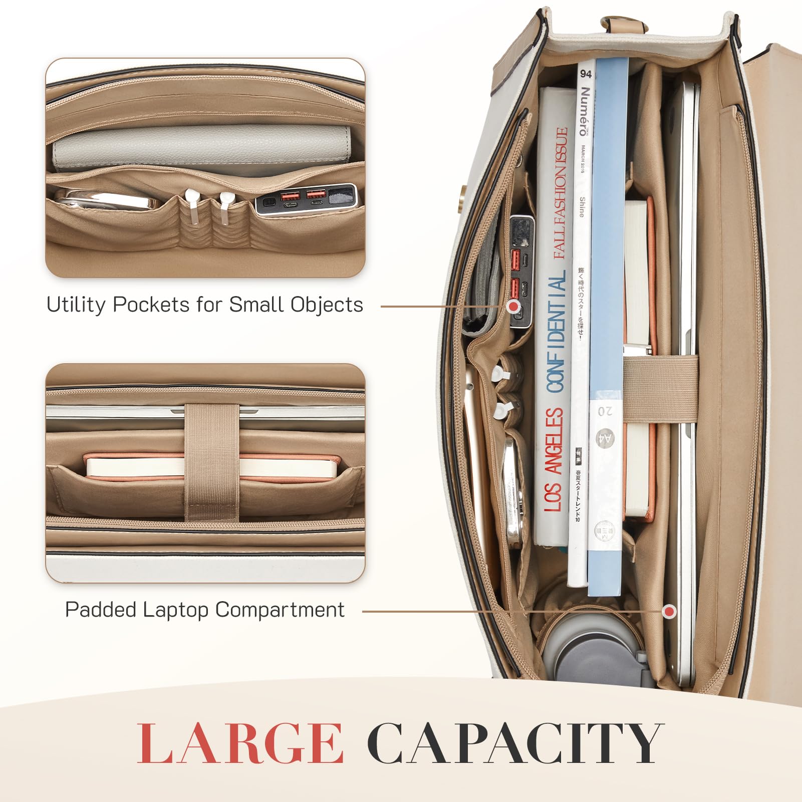 Designer Briefcase for Women - 16.5"L x 12"H x 4.7"W, 2.4lbs, fits laptops up to 15.6", main compartment can hold A4 binders. Perfect all-in-one messenger bag for work and travel. Carry this large capacity laptop purse still looking professional and stylish