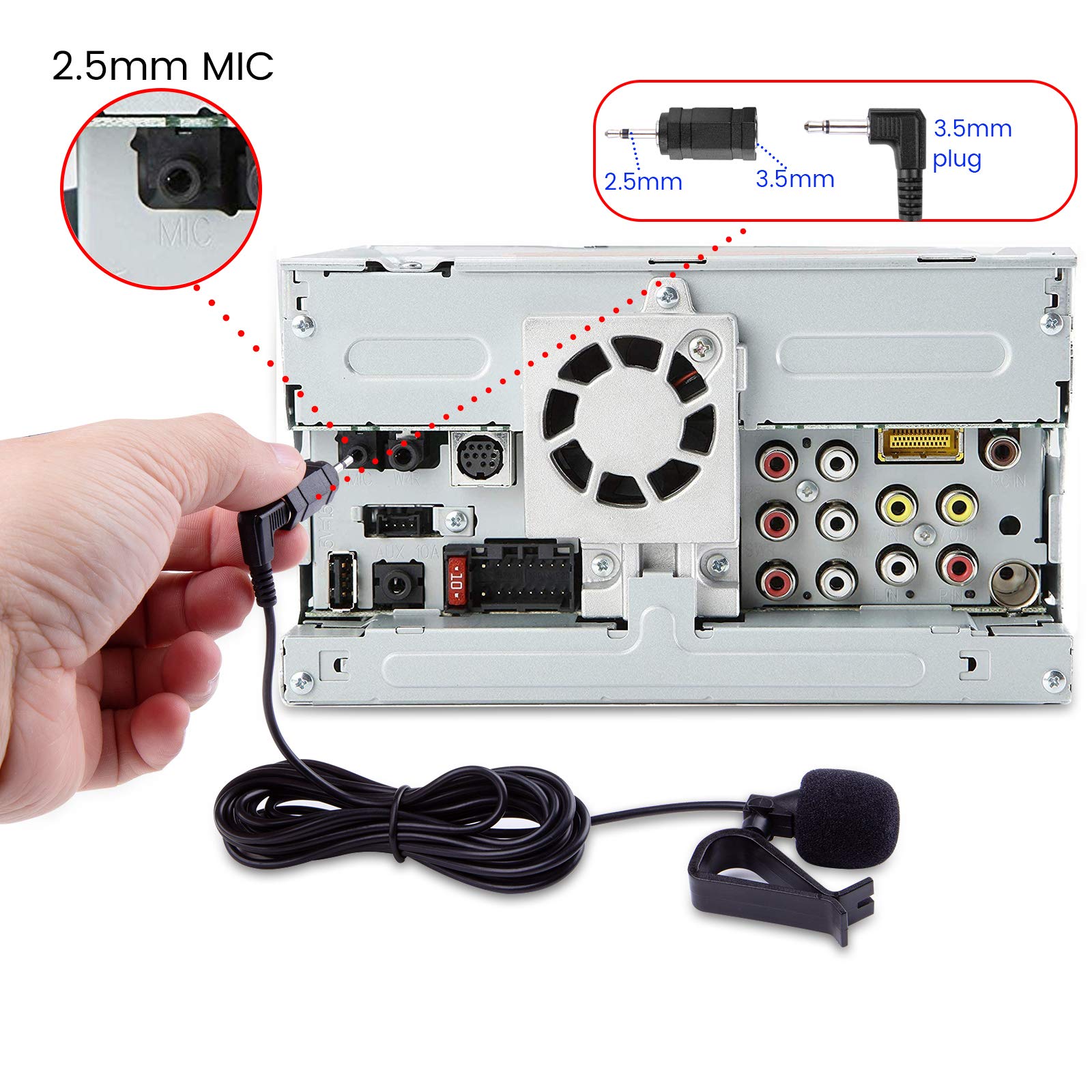 Universal Car Radio Microphone 3.5mm / 2.5mm Compatible with Pioneer Kenwood Boss Corehan Power Acoustik JVC Sony Jensen Alpine Stereo receiver with Apple CarPlay and Android Auto Vehicle Head Unit Enabled Audio GPS navigation DVD