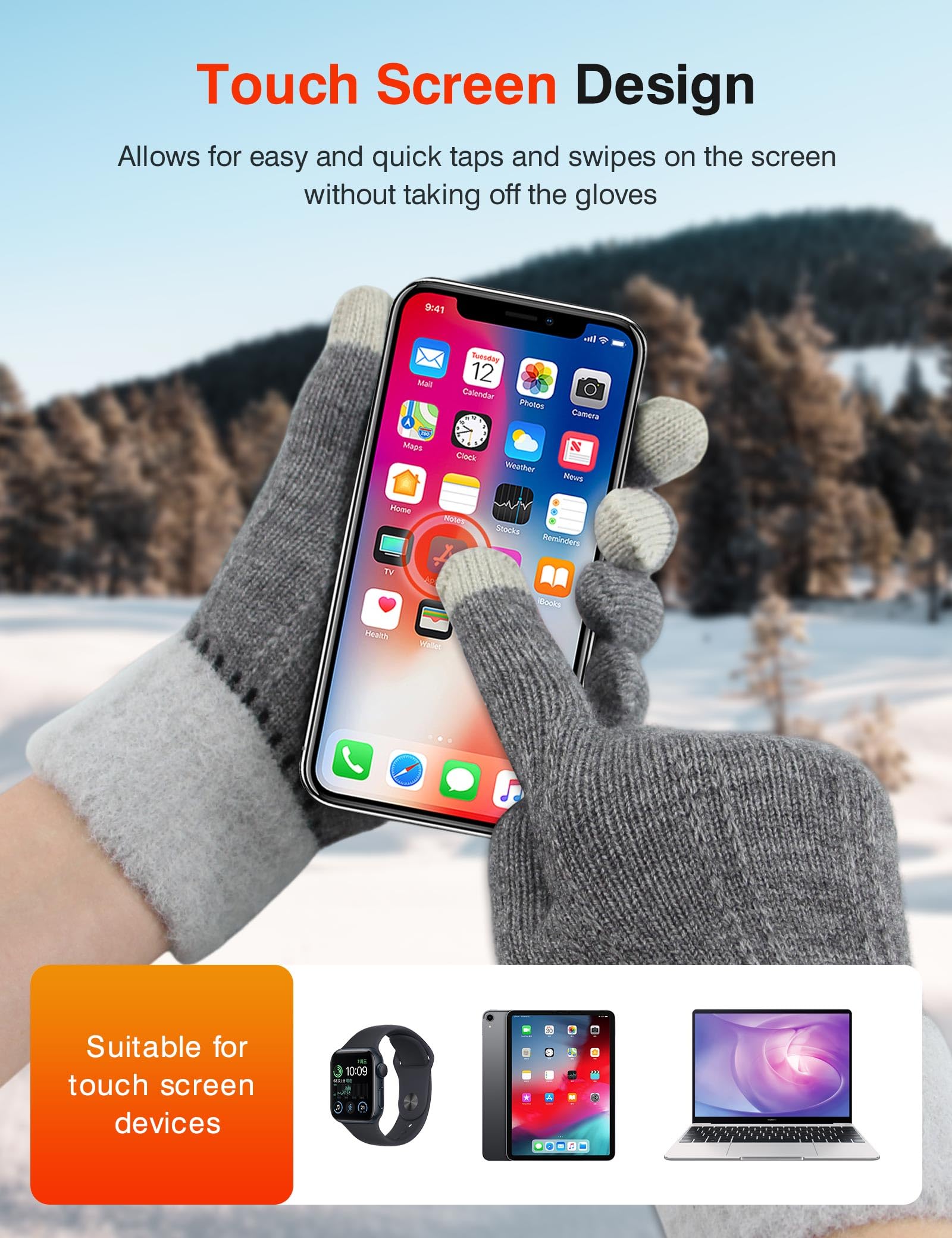 3 Touchscreen Fingers Design : Each pair of touchscreen gloves is equipped with highly sensitive conductive yarn on the thumb, index and middle fingers for easy use with smartphones, tablets and other touch devices. No need to remove your gloves when tapping, swiping or scrolling.